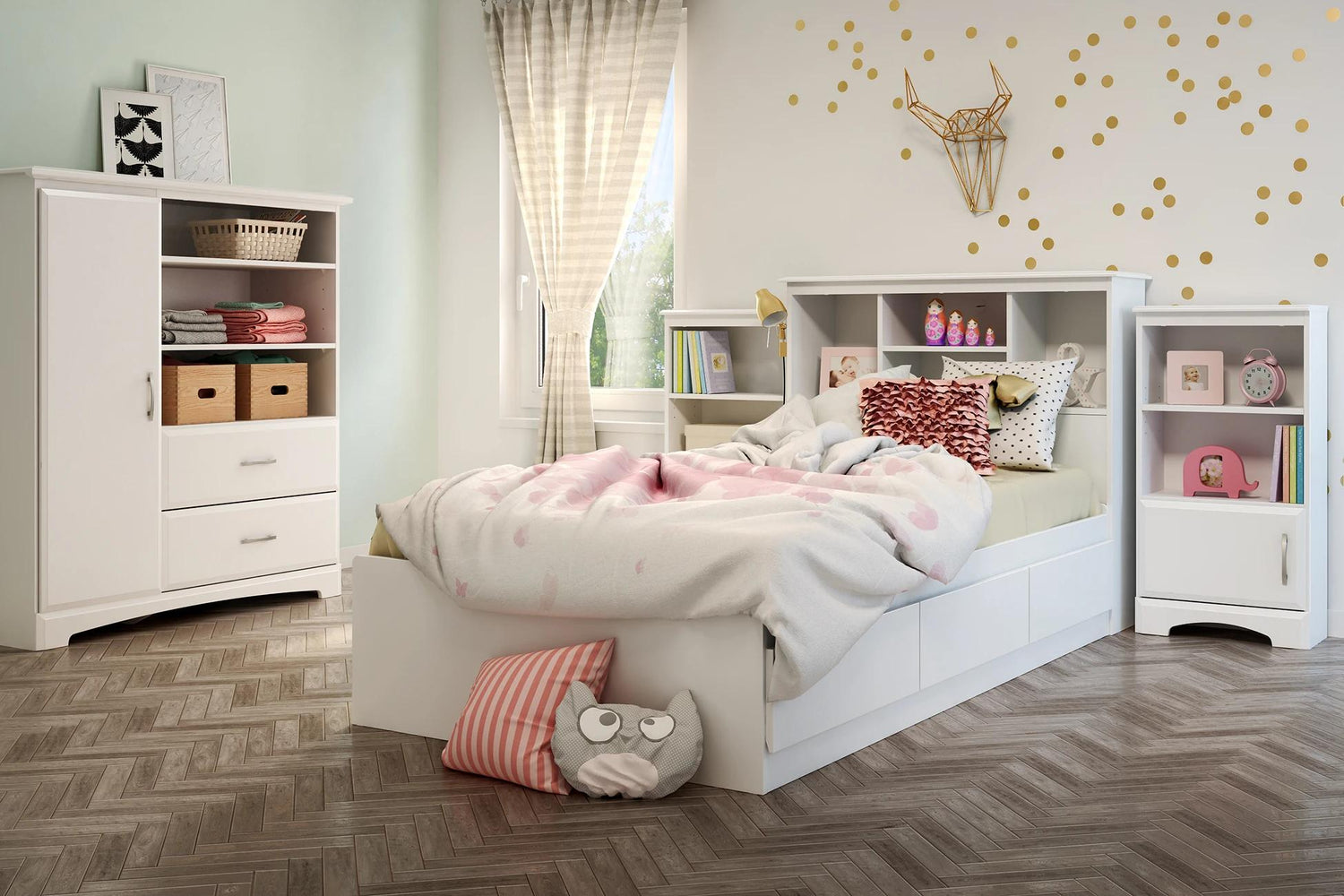 A collection of furniture in a timeless style that gives you a lot of decor options! Whether your kid wants a room with lots of color or a more classic look, these pieces will blend with the ambiance while adding some handy storage space.