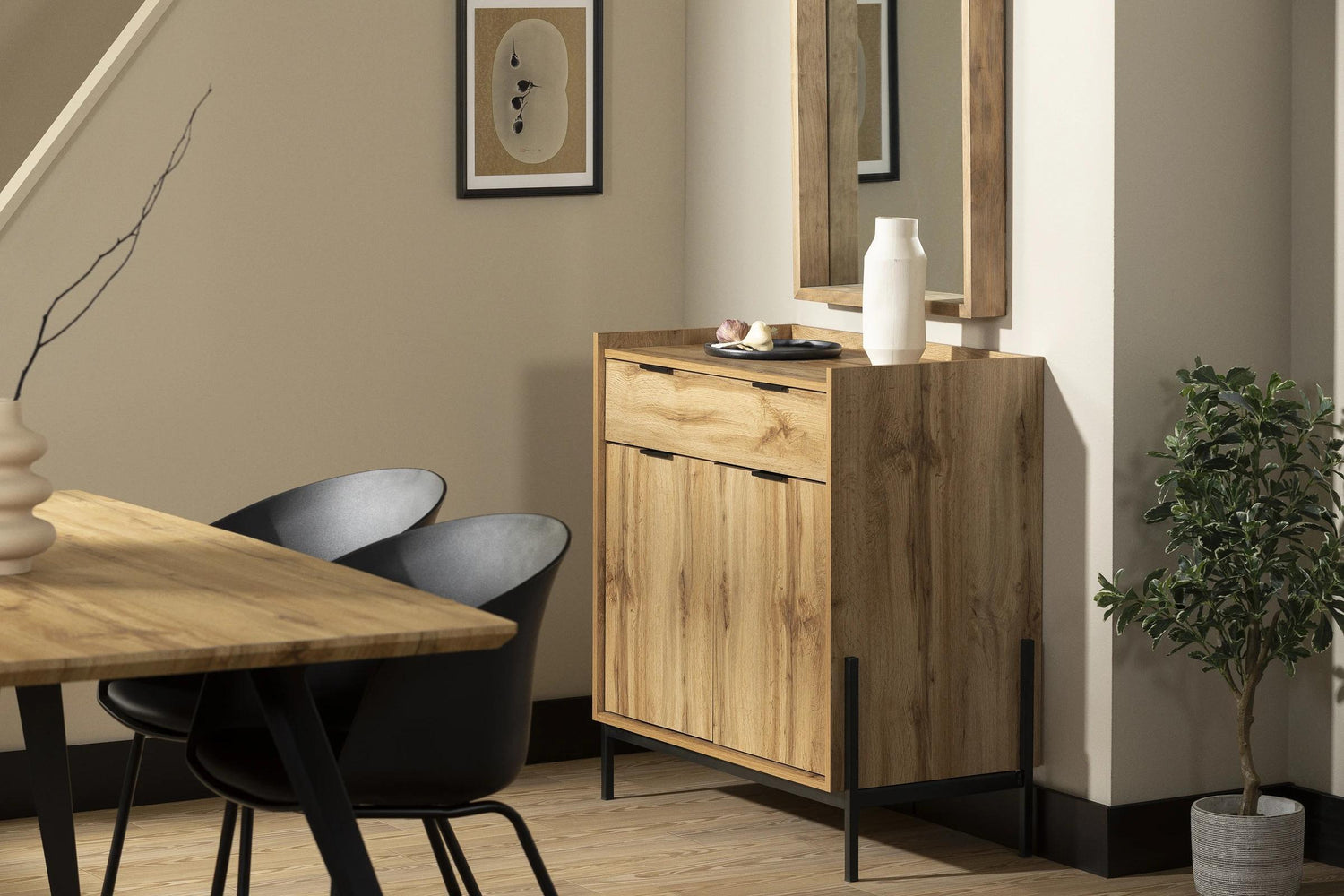 Le mobilier de la collection Milton séduit par ses fins accents en métal et son look minimaliste qui rappellent le style moderne urbain. Sa petite touche industrielle vous permettra de donner une apparence à la fois raffinée et moderne à la pièce.