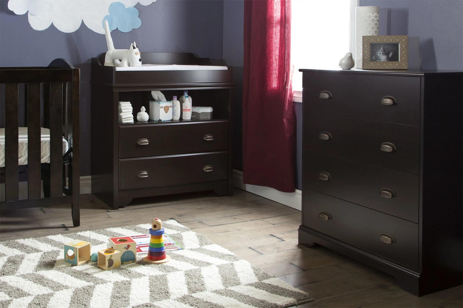 Create a warm, enveloping ambiance that evokes the quiet of an oceanfront scene! And you can use the handy storage spaces in this collection to put away all your little treasure’s clothes and other things.