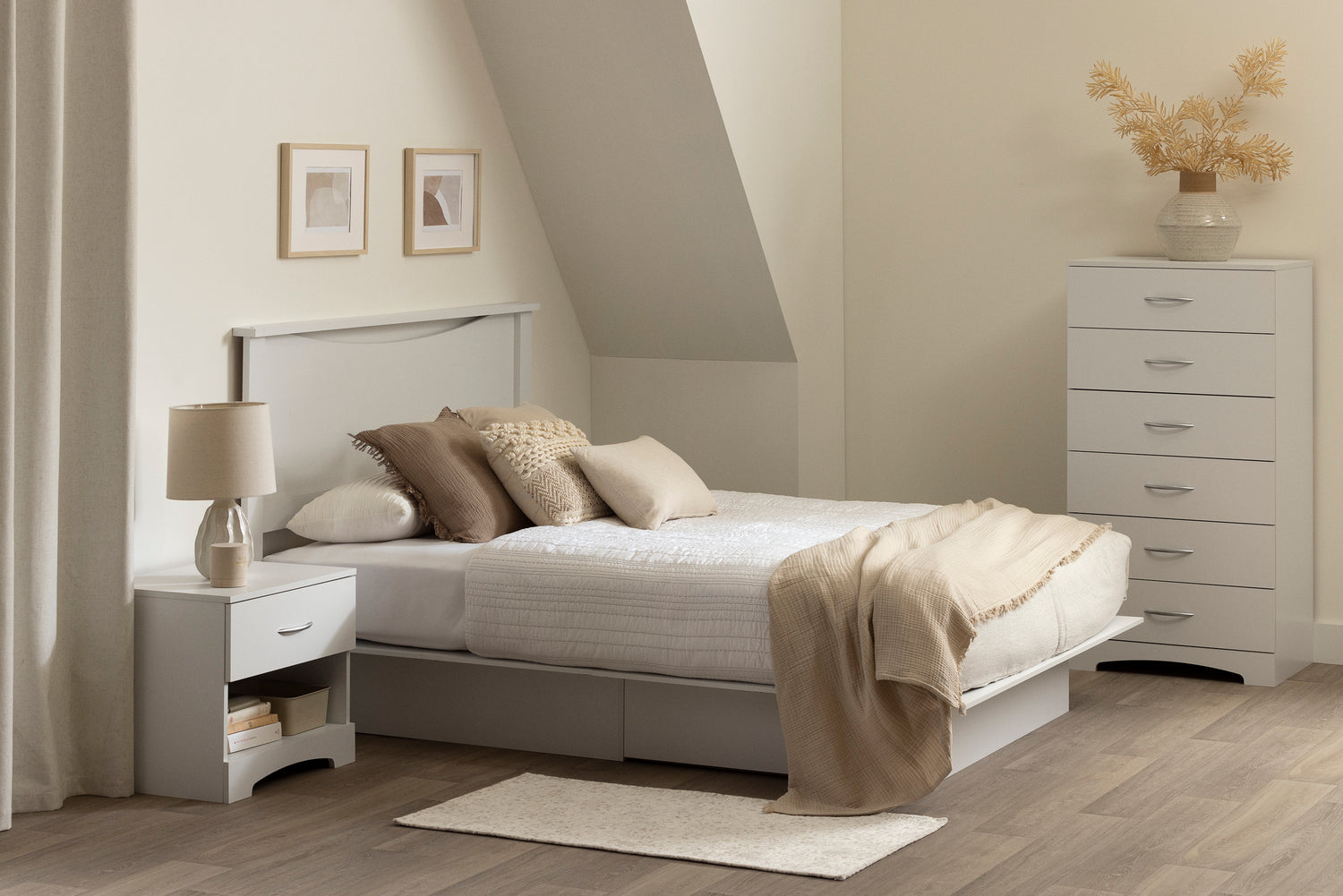 Donnez du style à votre pièce avec la collection Step One. Cette élégante collection mélange lignes minimalistes et poignées de métal sobres avec un riche fini pour donner une allure raffinée et contemporaine à votre chambre. Les coups-de-pied ajoutent un accent de modernité avec leurs lignes légèrement incurvées pour un soupçon de sophistication.