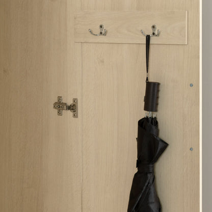 Faciliter vos sorties en ayant tout à portée de main avec cette armoire de rangement. Elle est non seulement esthétique, mais aussi extrêmement pratique avec ses solutions de rangement bien pensées. Elle est équipée de deux tiroirs spacieux, de deux crochets pour accrocher facilement sacs et clés, ainsi qu’une tringle solide pour les manteaux. Deux tablettes ajustables derrière les portes offrent une flexibilité supplémentaire pour maximiser encore plus votre espace de rangement. Vous pouvez déposer tout ce qui doit demeurer prêt de la porte sur les tablettes et y déposer des paniers pour les plus petits objets.