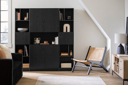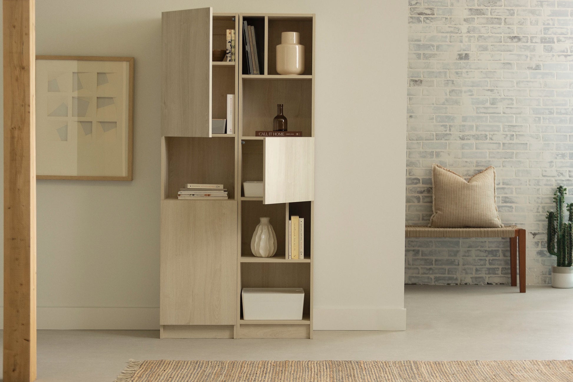 Puisqu’elles sont entièrement modulables, les étagères de rangement Liora permettent d’innombrables configurations. En fonction de vos besoins, mais surtout de l’espace disponible, juxtaposez les modules, agencez les finis et combinez le rangement ouvert et fermé afin de vous appropriez pleinement les lieux.