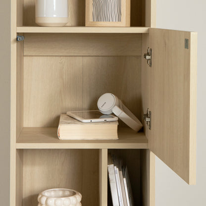 • RANGEMENT FERMÉ : au centre de la bibliothèque se trouve un compartiment de rangement fermé. La porte s’ouvre en appuyant doucement dessus. Dissimulez câbles, chargeurs et jouets pour maintenir un salon bien ordonné.