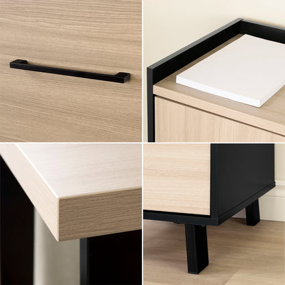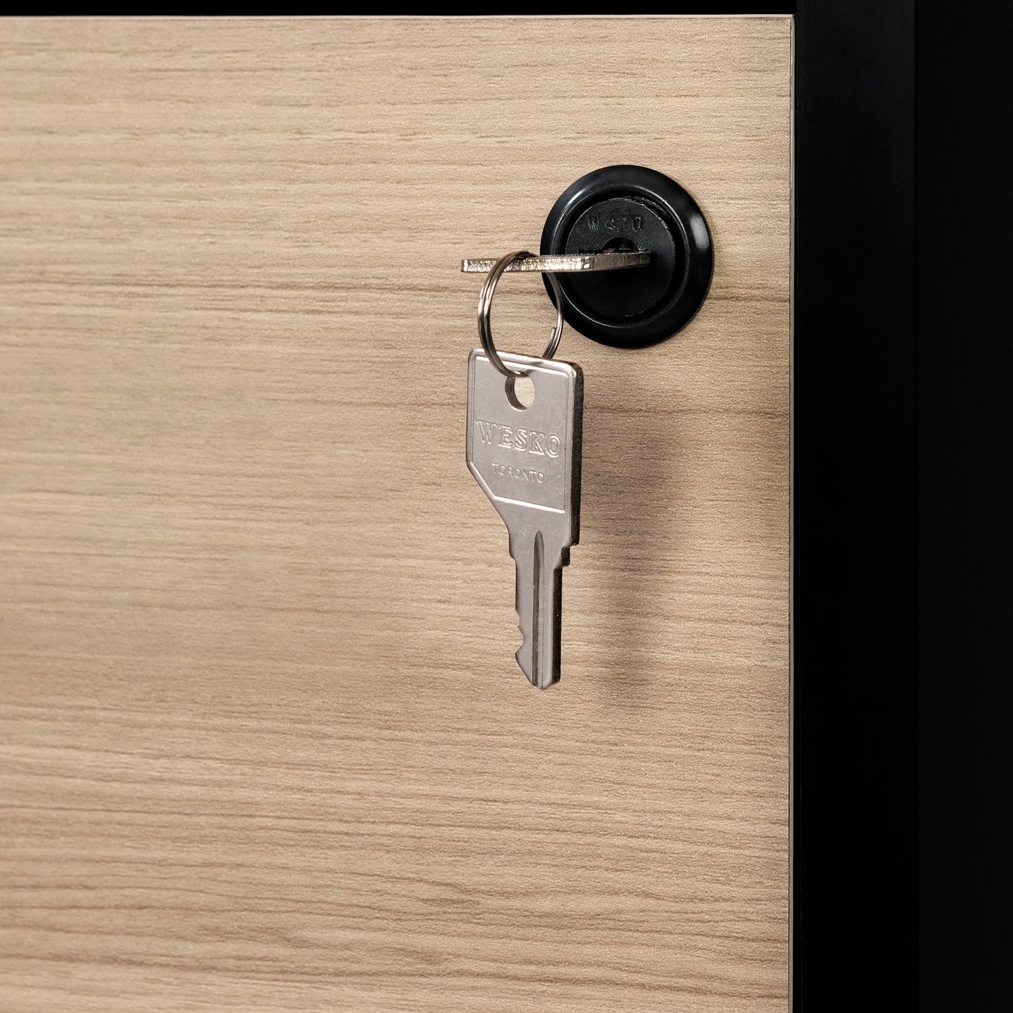 • RANGEMENT PRATIQUE: gardez les objets dont vous vous servez régulièrement à portée de main dans les deux espaces ouverts et rangez tous vos documents importants dans les deux tiroirs classeurs sur coulisses en métal. Lors de l’assemblage, vous pouvez même choisir lequel des deux tiroirs pourra se verrouiller à clé.