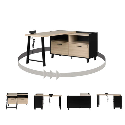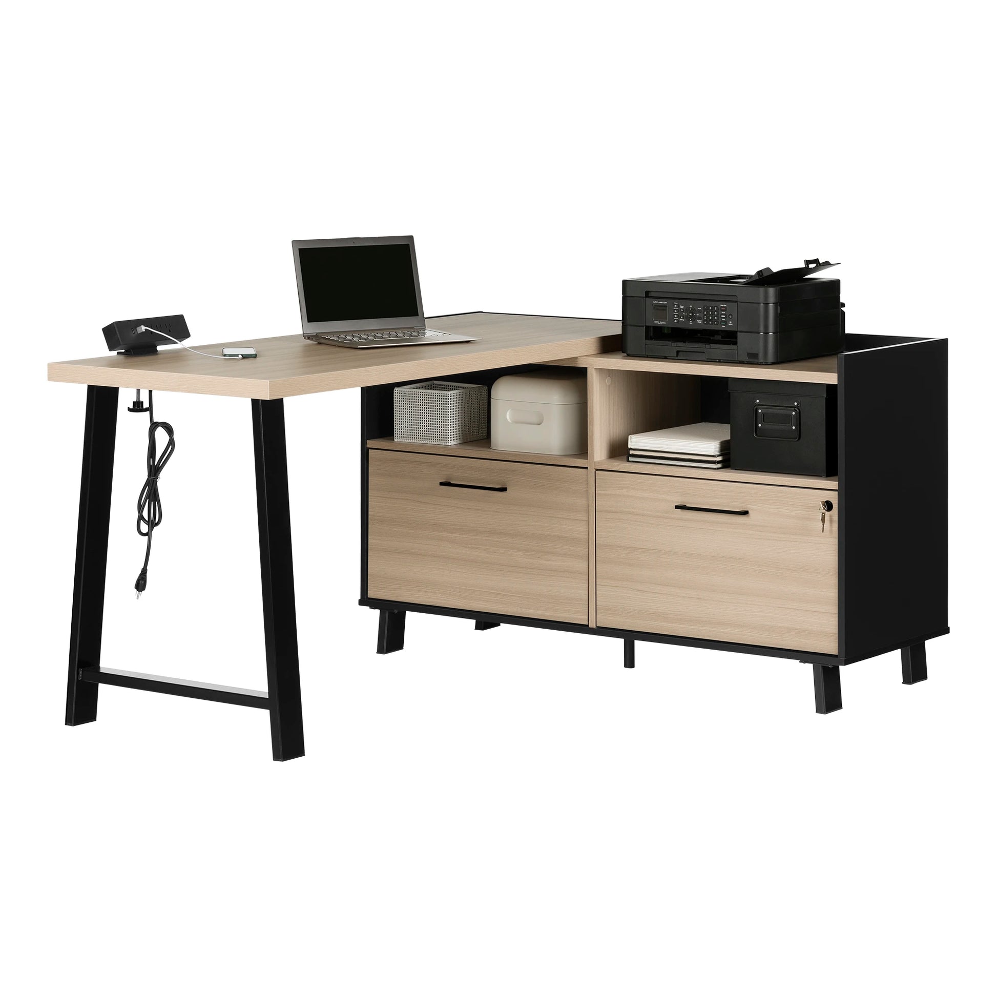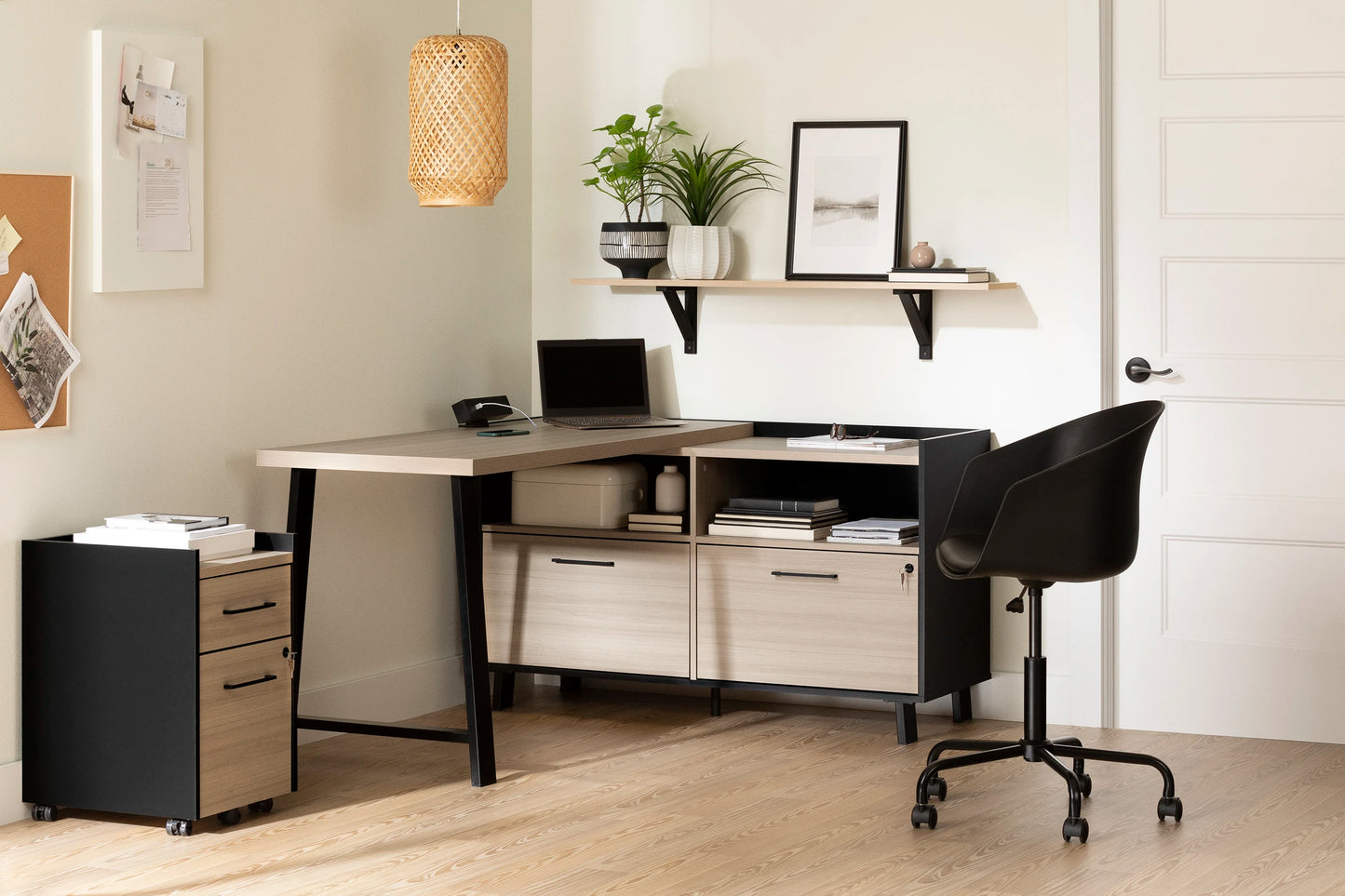 Il n’y a rien de plus important que d’avoir une surface de travail adaptée à ses besoins! Avec ce bureau en coin, vous n’en manquerez pas, c’est certain. Sa surface peut accueillir au moins un portable et un écran supplémentaire, tandis que l’espace sur le classeur est l’endroit parfait pour une imprimante. Pratique, puisque vous aurez tous vos appareils près de vous! Et pour éviter que les fils se retrouvent emmêlés, nous avons même ajouté une prise d’alimentation avec trois prises régulières et deux prises USB. En plus, ce bureau est réversible et fini tout le tour: c’est vous qui décidez de quel côté vous préférez mettre le classeur lors de l’assemblage, et vous pourrez positionner le bureau comme vous le voulez dans la pièce.
