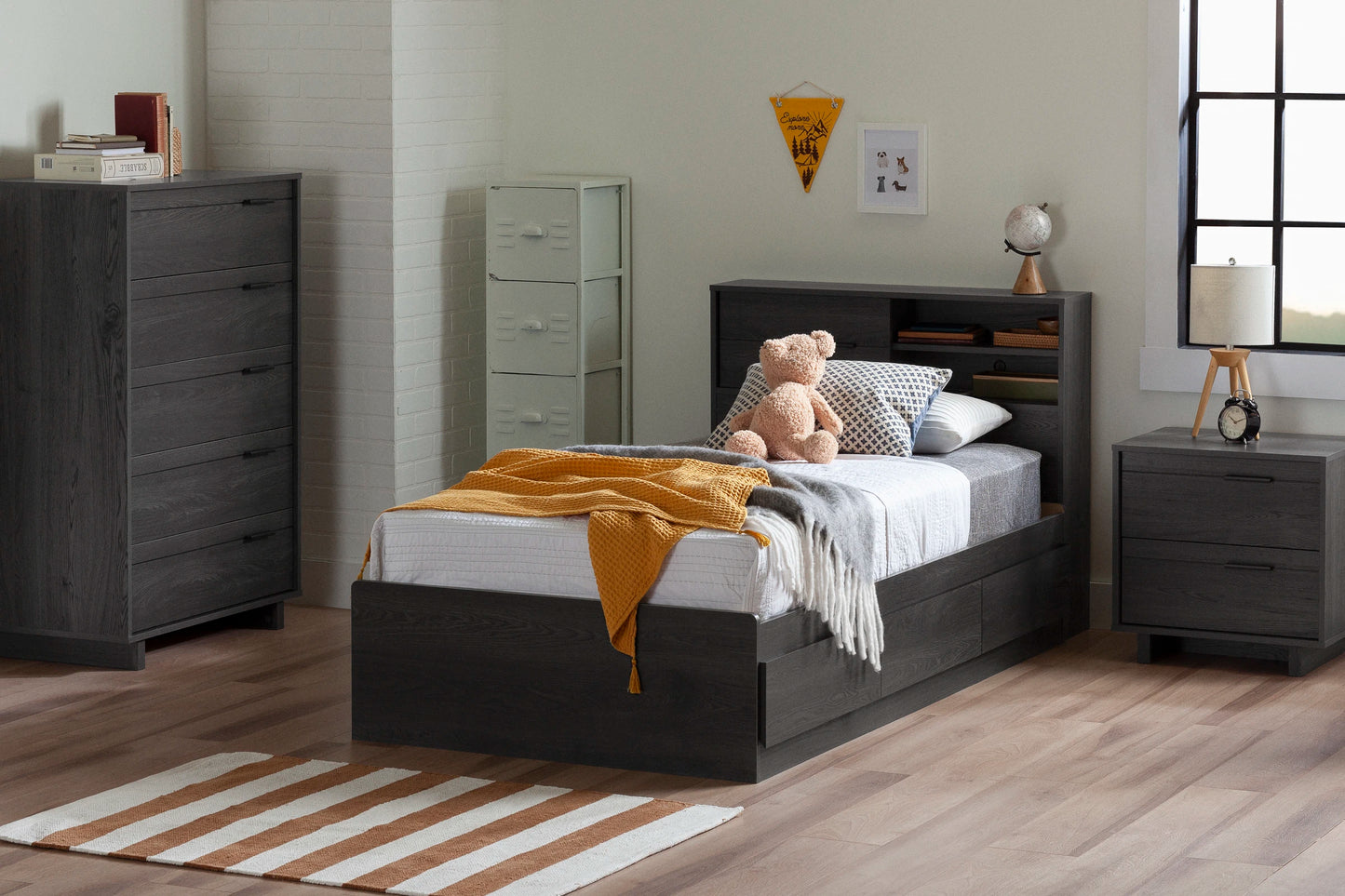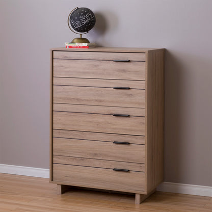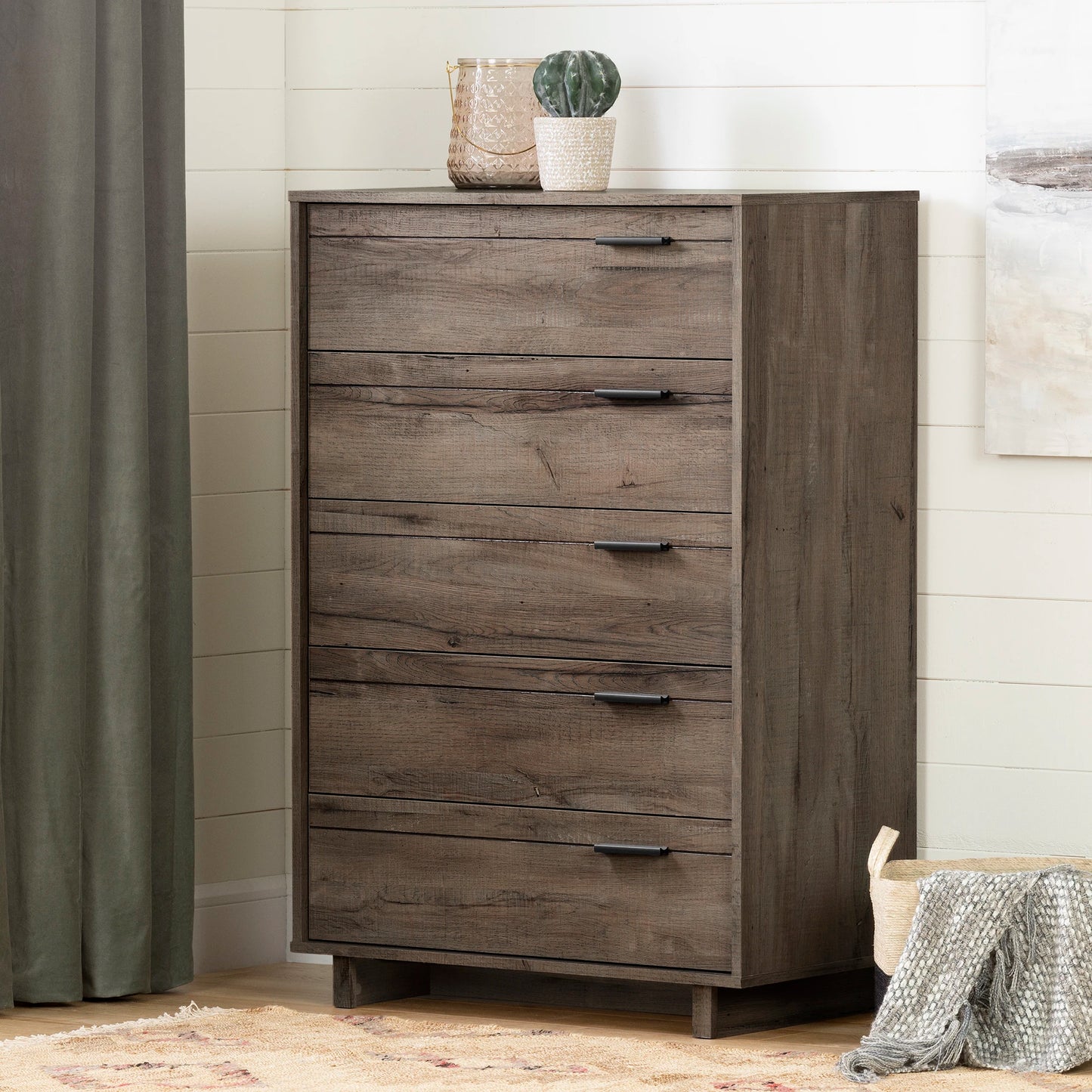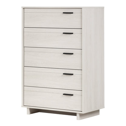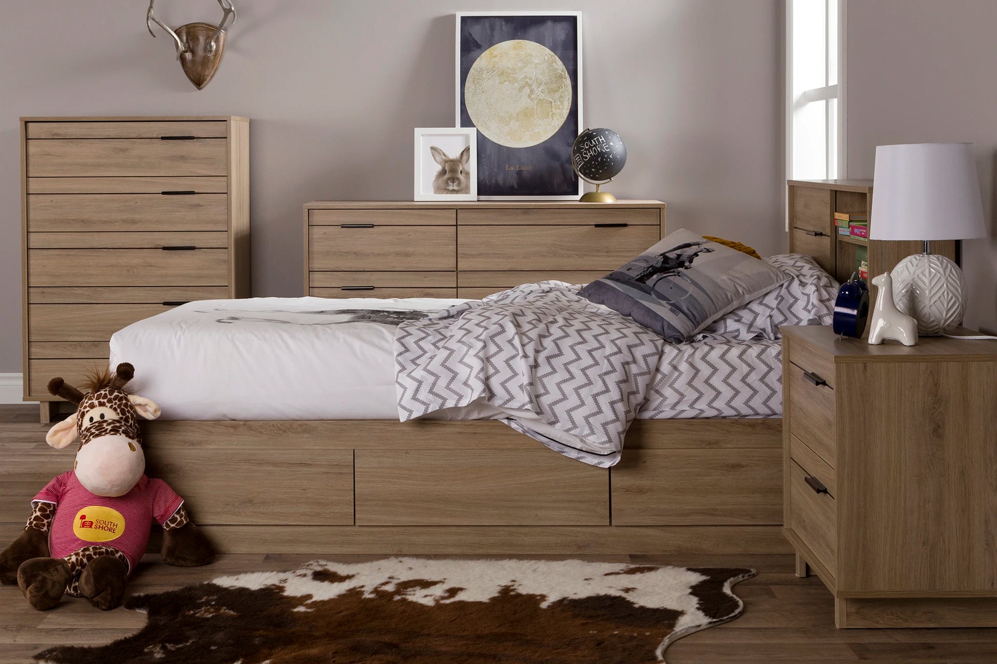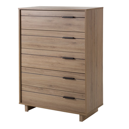 Vous pouvez utiliser les cinq grands tiroirs pour organiser vos sous-vêtements, vos jetés, vos livres ou tout autre objet que vous souhaitez conserver à portée de main. La surface a un format parfait pour y déposer une lampe de lecture. D’ailleurs, les tiroirs sont installés sur des coulisses en métal, ce qui les rend extrêmement durables à long terme.