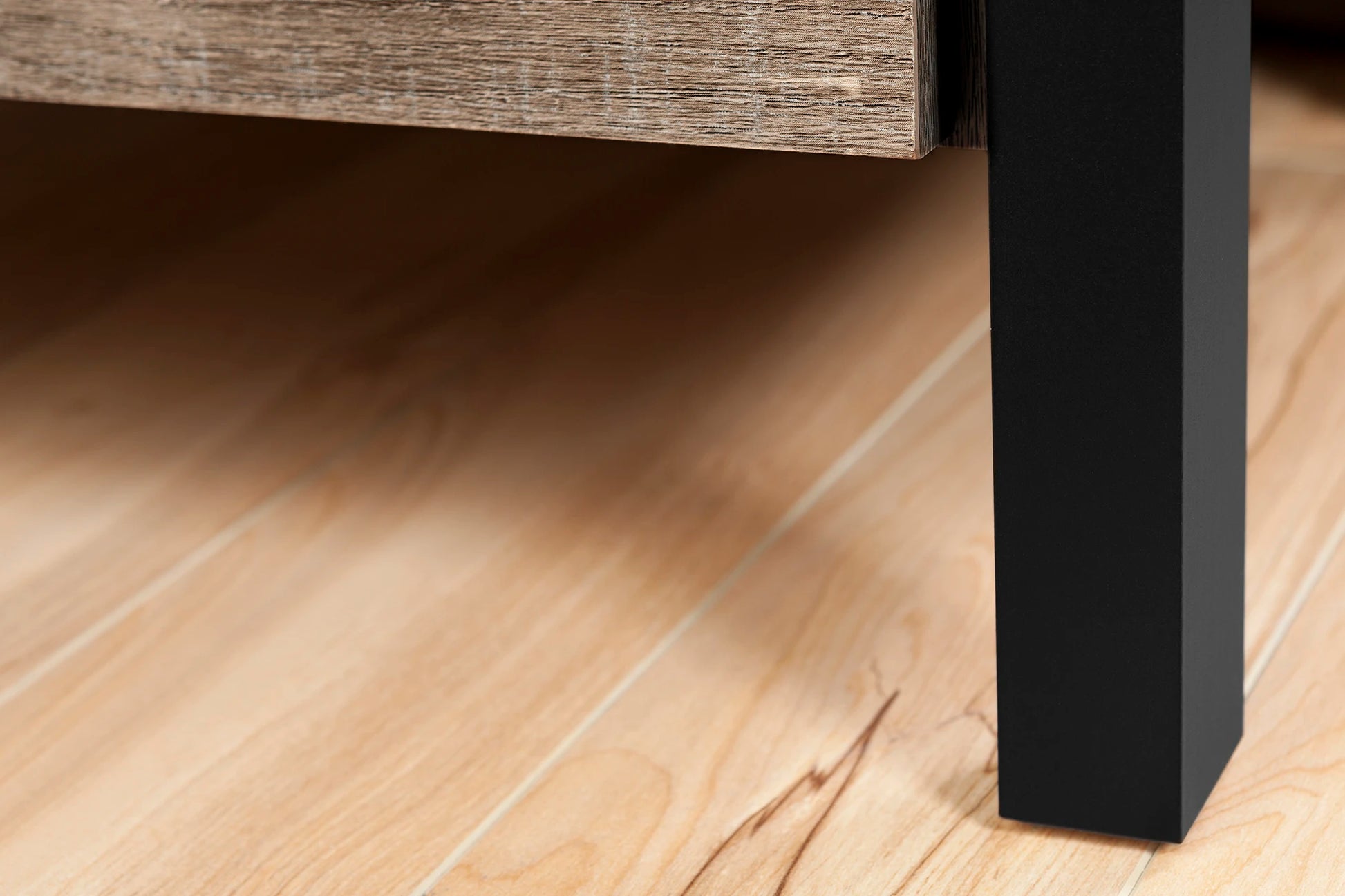 Laissez cette commode de la collection Munich être le point central de votre chambre. Dotée de pieds extra hauts, de textures bicolores et de poignées métalliques droites, cette commode s'intégrera à tous les décors.