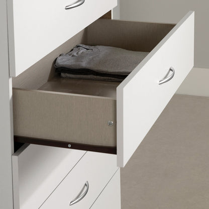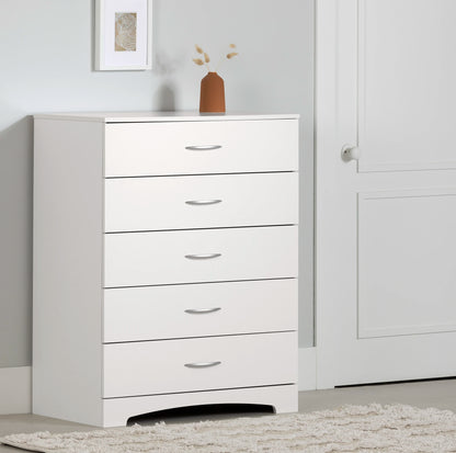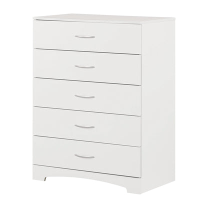 Cette collection de mobilier pour la chambre à coucher a été pensée pour les petits espaces! Cette commode a 5 tiroirs pratiques équipés de poignées en métal et vous offre juste assez de place pour tous vos vêtements et votre literie. Les coulisses des tiroirs sont faites en métal et comprennent des amortisseurs et des loquets afin d’assurer un environnement sécuritaire à vos tout-petits.