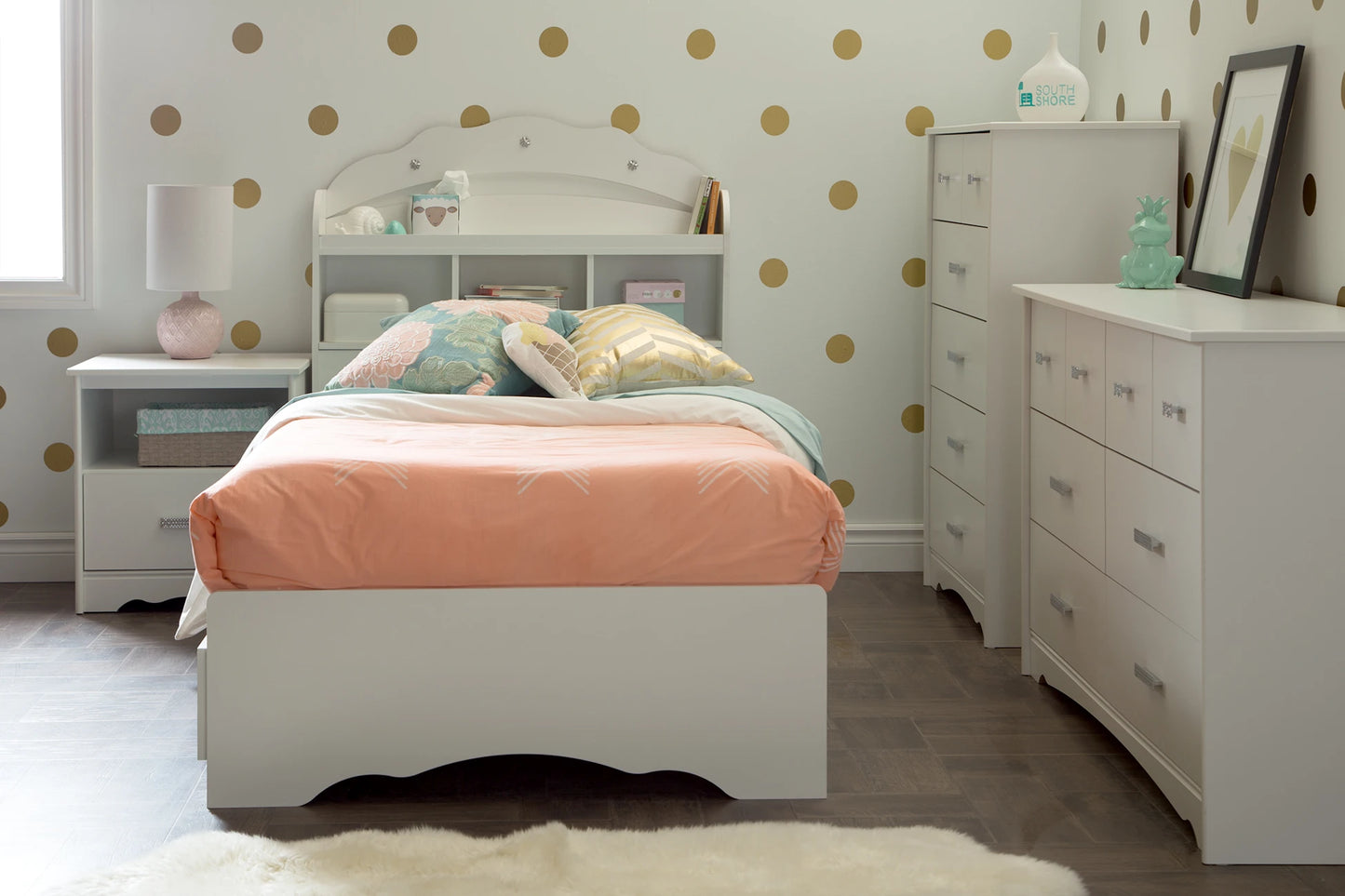 Les cinq tiroirs spacieux que vous offre cette chiffonnière vous donneront un bon coup de pouce pour garder la chambre de votre petite demoiselle à l’ordre. Classez chaque catégorie de vêtement dans une section bien définie pour faciliter la sélection des habits et le rangement du lavage. Votre enfant pourra facilement accéder aux tiroirs du bas, alors placez-y ses jupes et ses chandails préférés!
