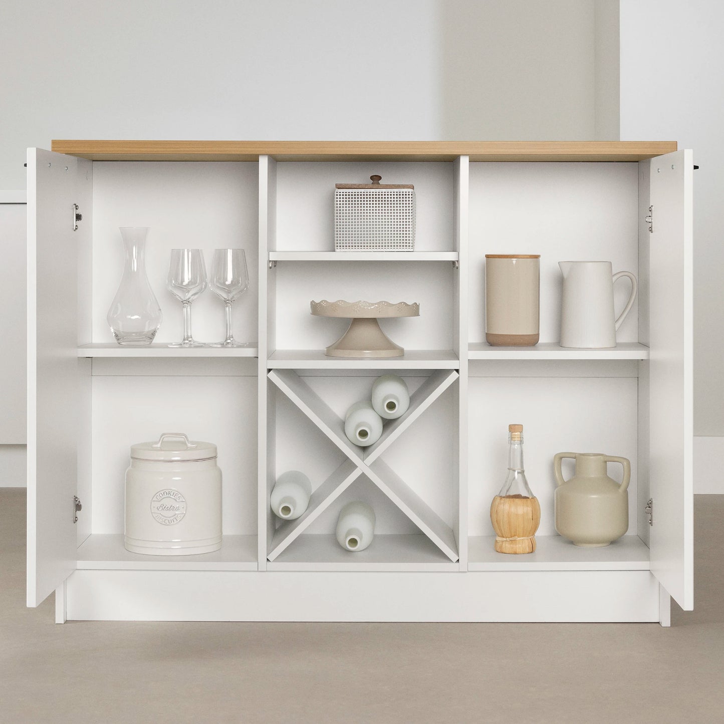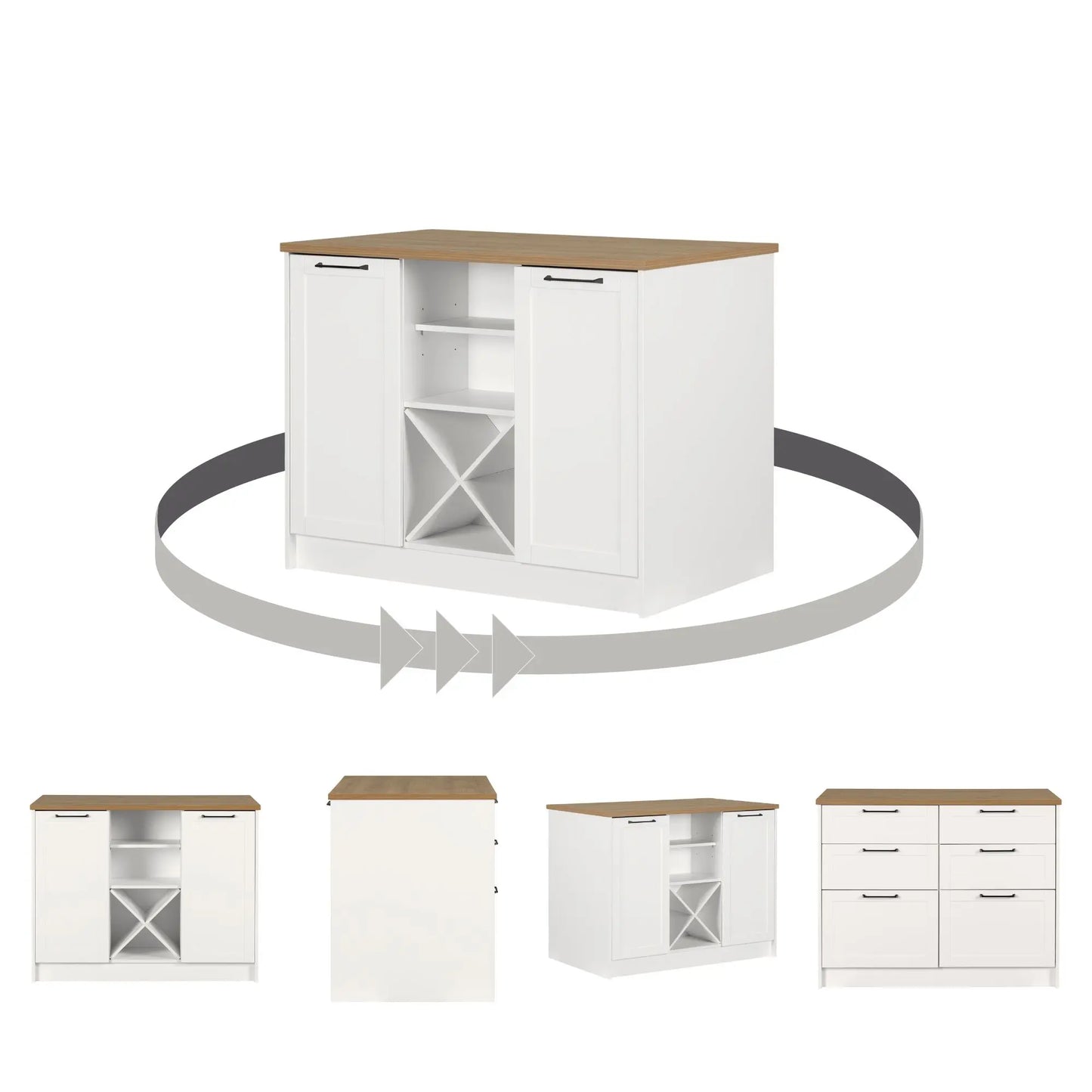 • UNE TONNE DE RANGEMENT : ajoutez du rangement facilement dans votre cuisine à l’aide de cet îlot. En plus d’être doté d’un rangement à vin intégré (parfait pour recevoir!), de 2 armoires avec tablettes fixes et de 2 compartiments ouverts, il peut être installé tant de côté, contre un mur, qu’au centre de la pièce.