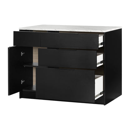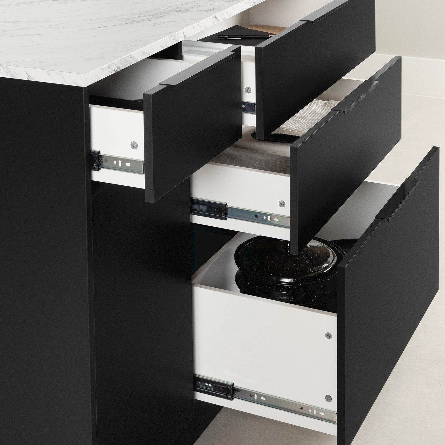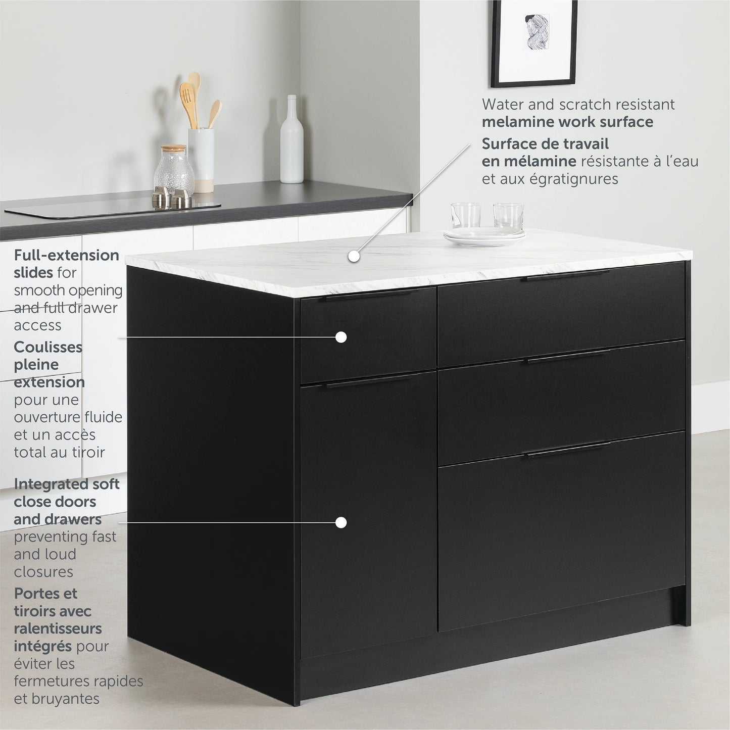 • PLUSIEURS FORMATS DE TIROIRS : doté de 4 tiroirs, dont un grand et profond parfait pour les chaudrons, cet îlot maximise le rangement efficacement dans tous les types de cuisine. Grâce à leurs coulisses pleine extension en métal, leur fond solide et leur mécanisme à fermeture tout en douceur, ces tiroirs vous permettent de profiter d’une expérience fluide en tout temps.