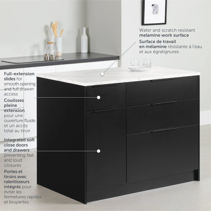 Vous aimez cuisiner comme un chef à l’occasion? Prendre le petit déjeuner auprès de vos enfants est votre moment préféré de la journée? Cet îlot de cuisine convient aussi bien aux familles qu’aux apprentis cuistots se passionnant pour la gastronomie. Facile à laver en plus d’être résistant à l’eau et aux égratignures grâce à sa surface en mélamine, ce plan de travail saura maximiser l’espace efficacement, et ce, même si vous disposez d’une cuisine de petite dimension. Évitez les grandes rénovations avec cette solution tout-en-un!