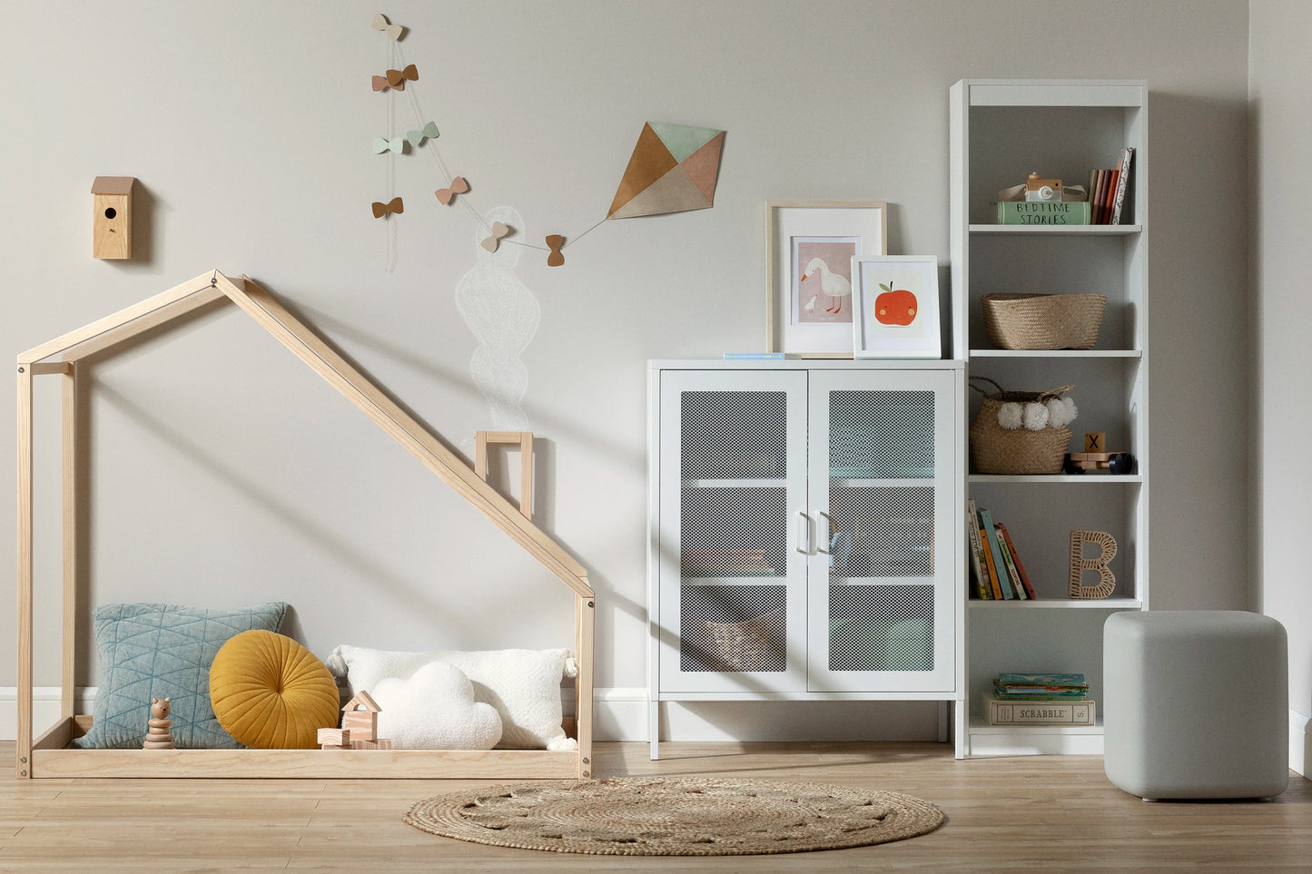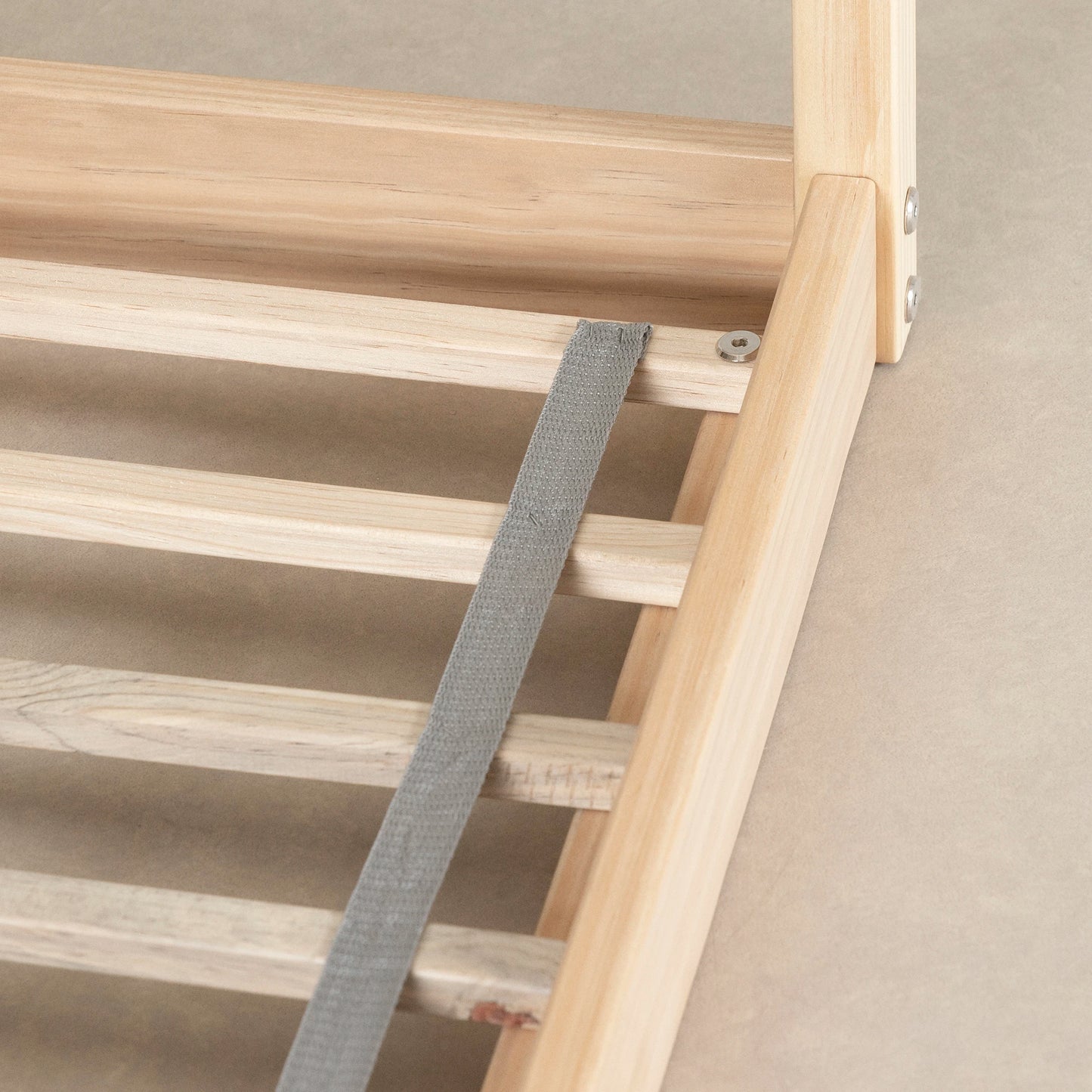 • LATTES DE BOIS AMOVIBLES : déposez un matelas de dimension standard pour bassinette sur la plateforme pour créer un lit de jour ou pour les amis. Ce sera bien simple de retirer le tout si vous préférez libérer l’espace plancher pour jouer!