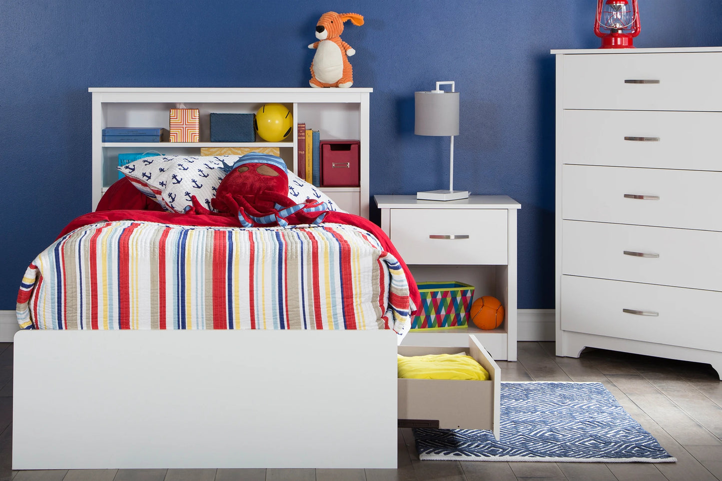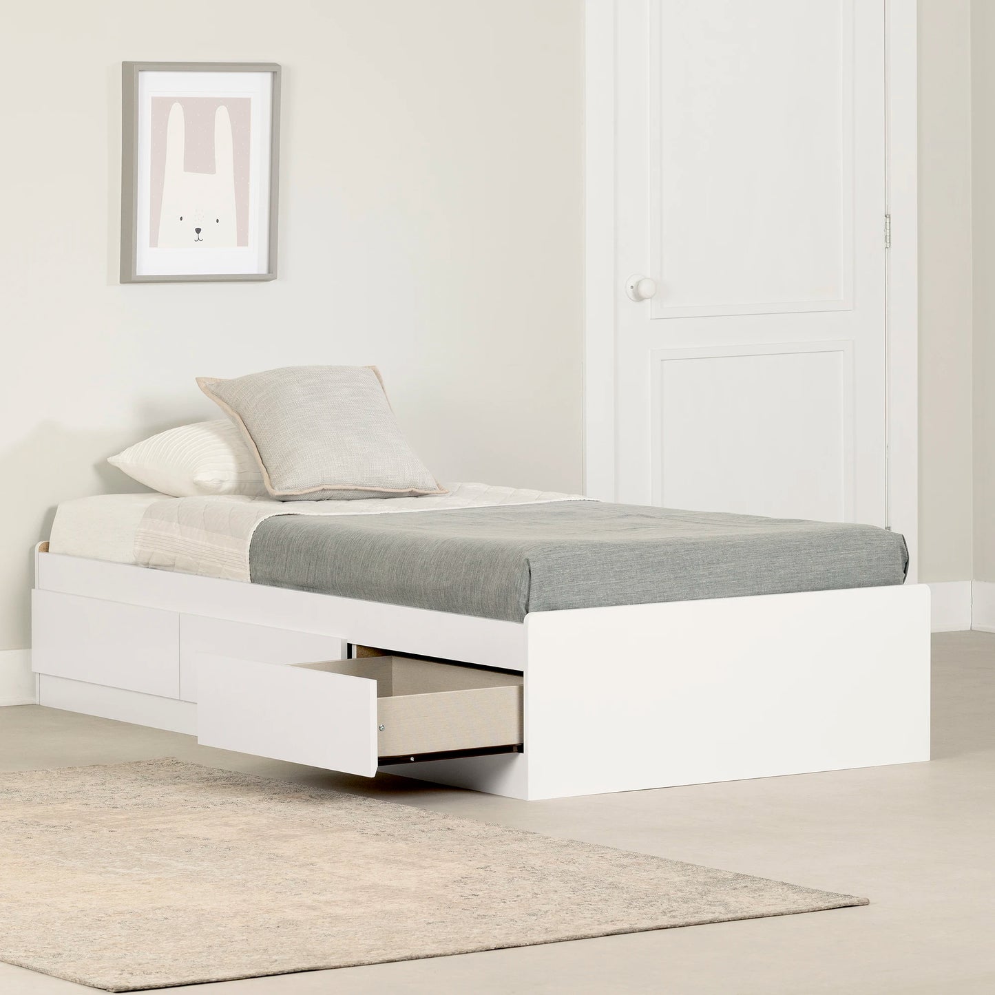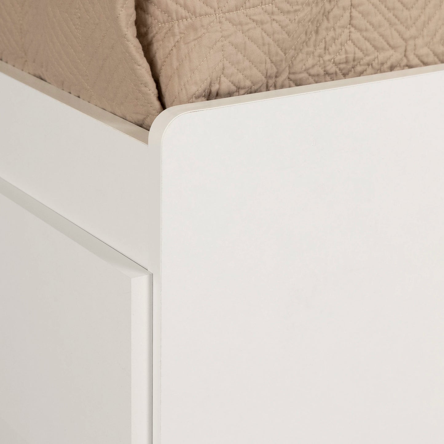 Cette plateforme de lit sera idéale pour la chambre de votre enfant avec ses lignes minimalistes et son fini neutre. Ses tiroirs sans poignées sont discrets et participeront à créer une ambiance tendance et paisible. Ses coins arrondis contribuent à son style et aussi à la sécurité de votre tout-petit énergique. Ce design passe-partout conviendra à tous les âges, aux filles comme aux garçons!