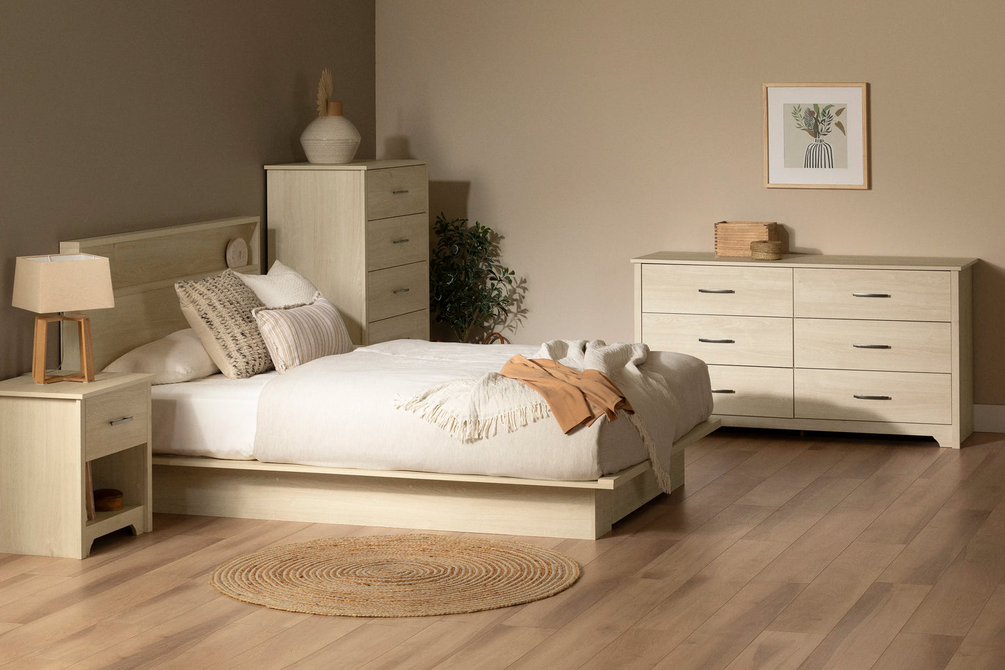 Ensemble lit plateforme avec tiroir et tête de lit avec tablette Fusion