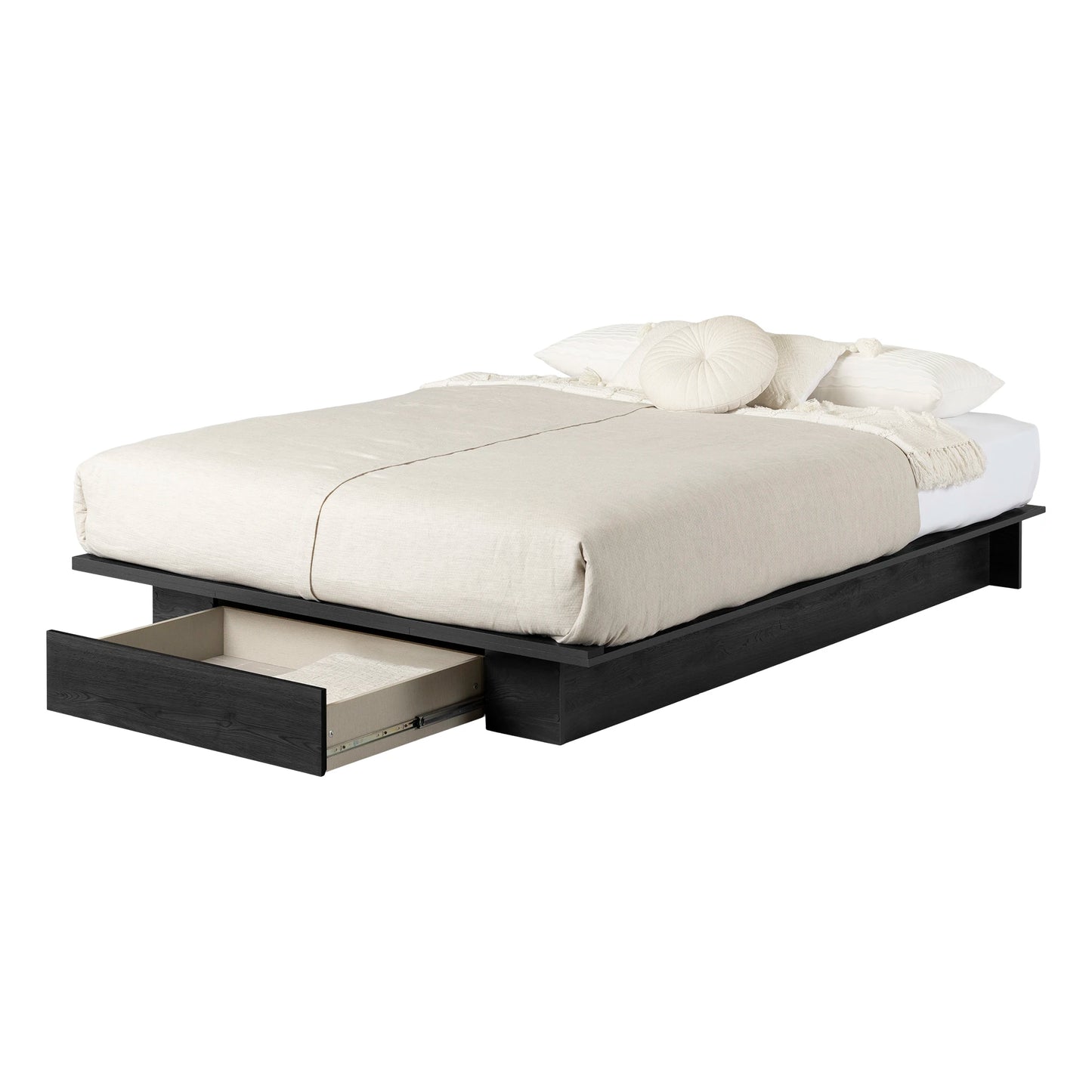 Constituant une base solide et stable pour le matelas de votre choix (non fourni), le lit plateforme Holland comprend une surface laminée et constitue une solution de rangement simple pour les chambres à coucher dont l'espace est limité. Le tiroir spacieux situé à l'extrémité du cadre de lit s'ouvre en glissant doucement pour révéler un grand espace pour les vêtements ou la literie, les gardant bien rangés, organisés et hors de vue.
