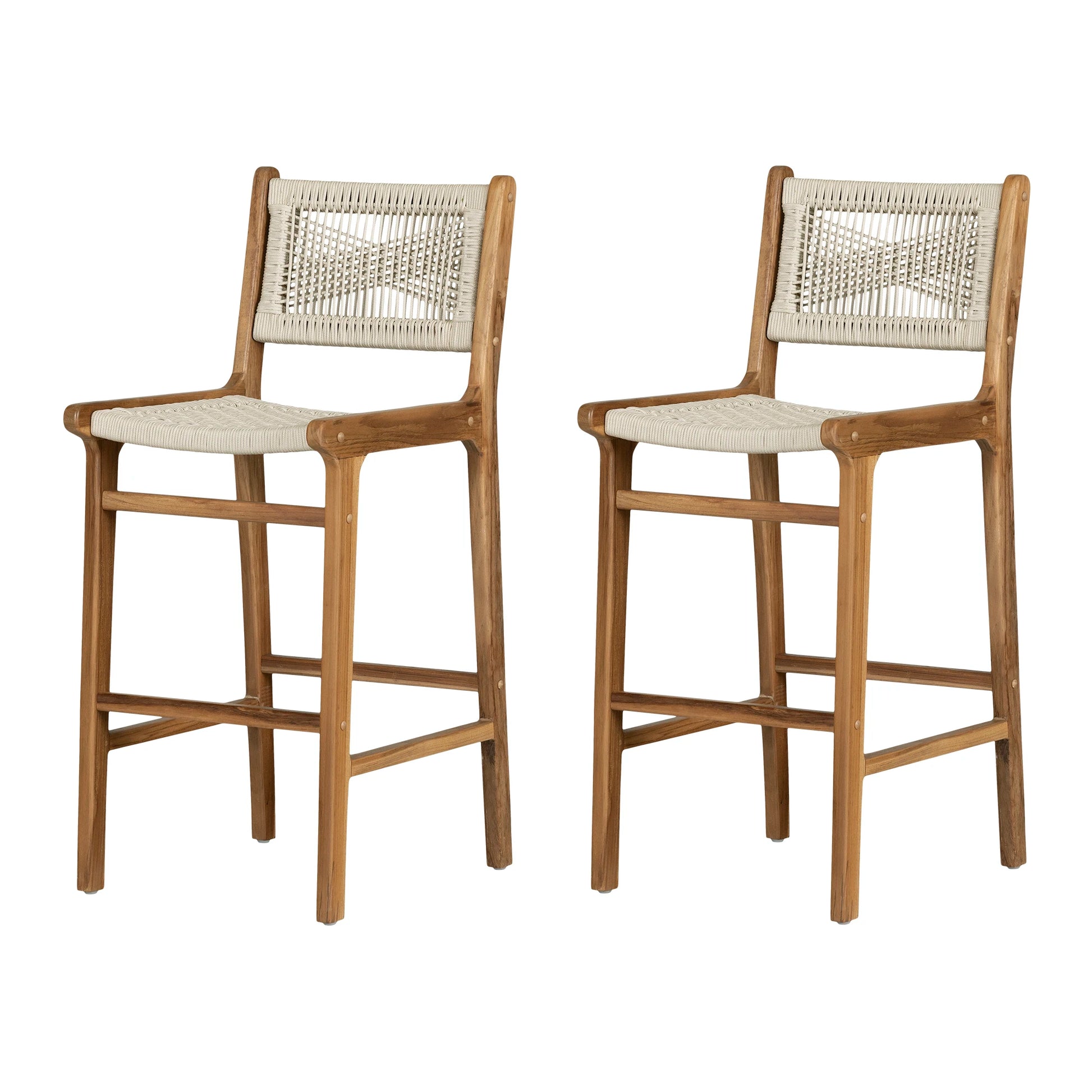Lot de 2 tabourets de bar en bois de teck et en corde tressée Agave