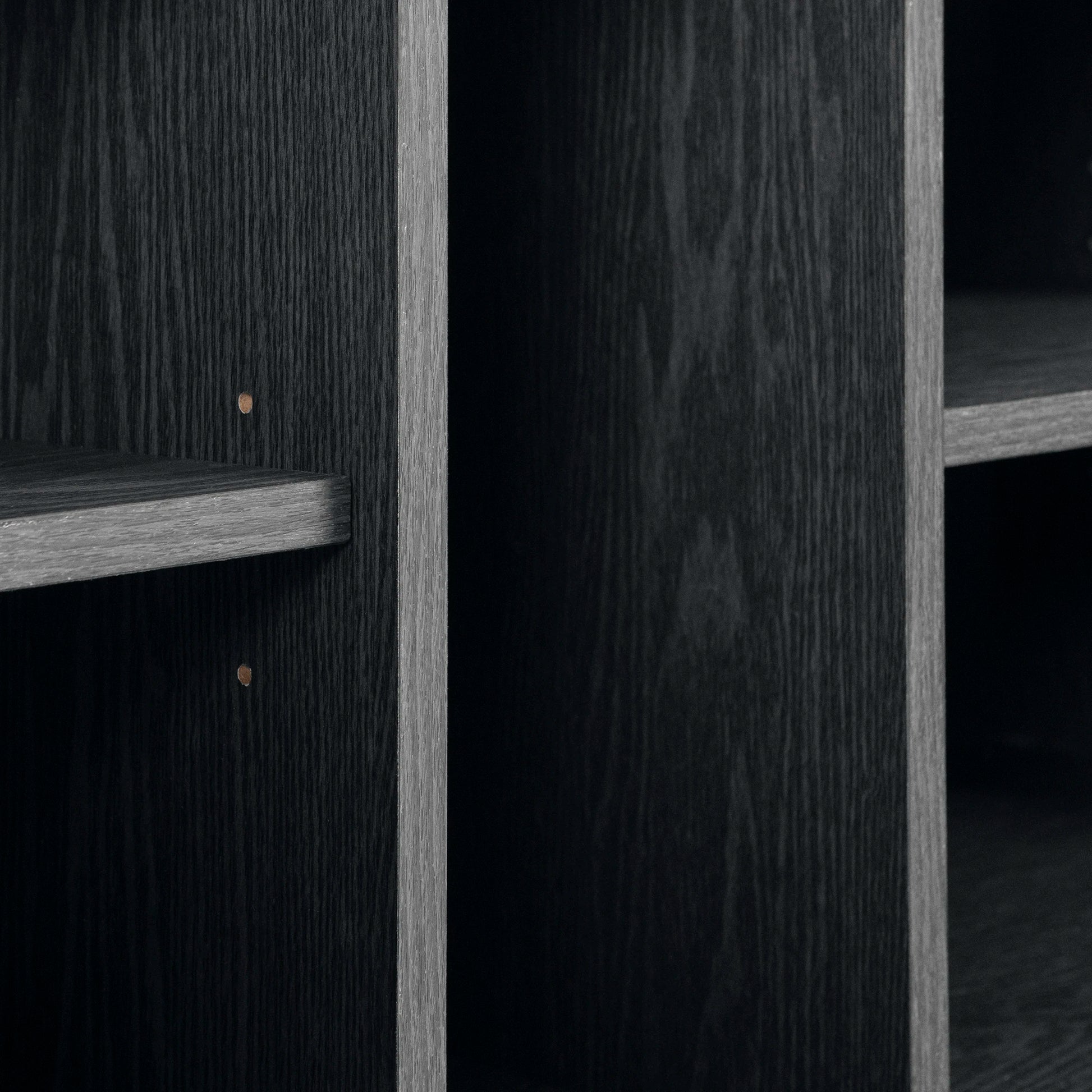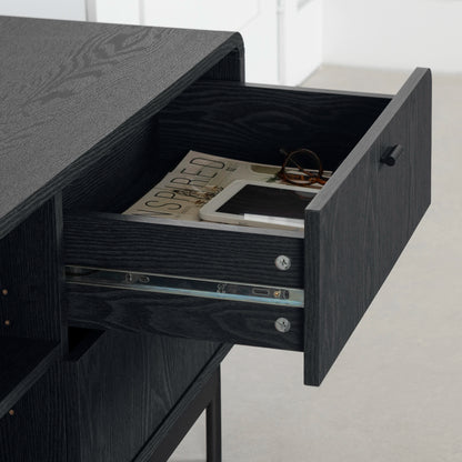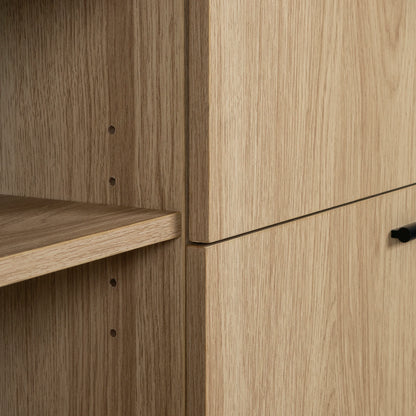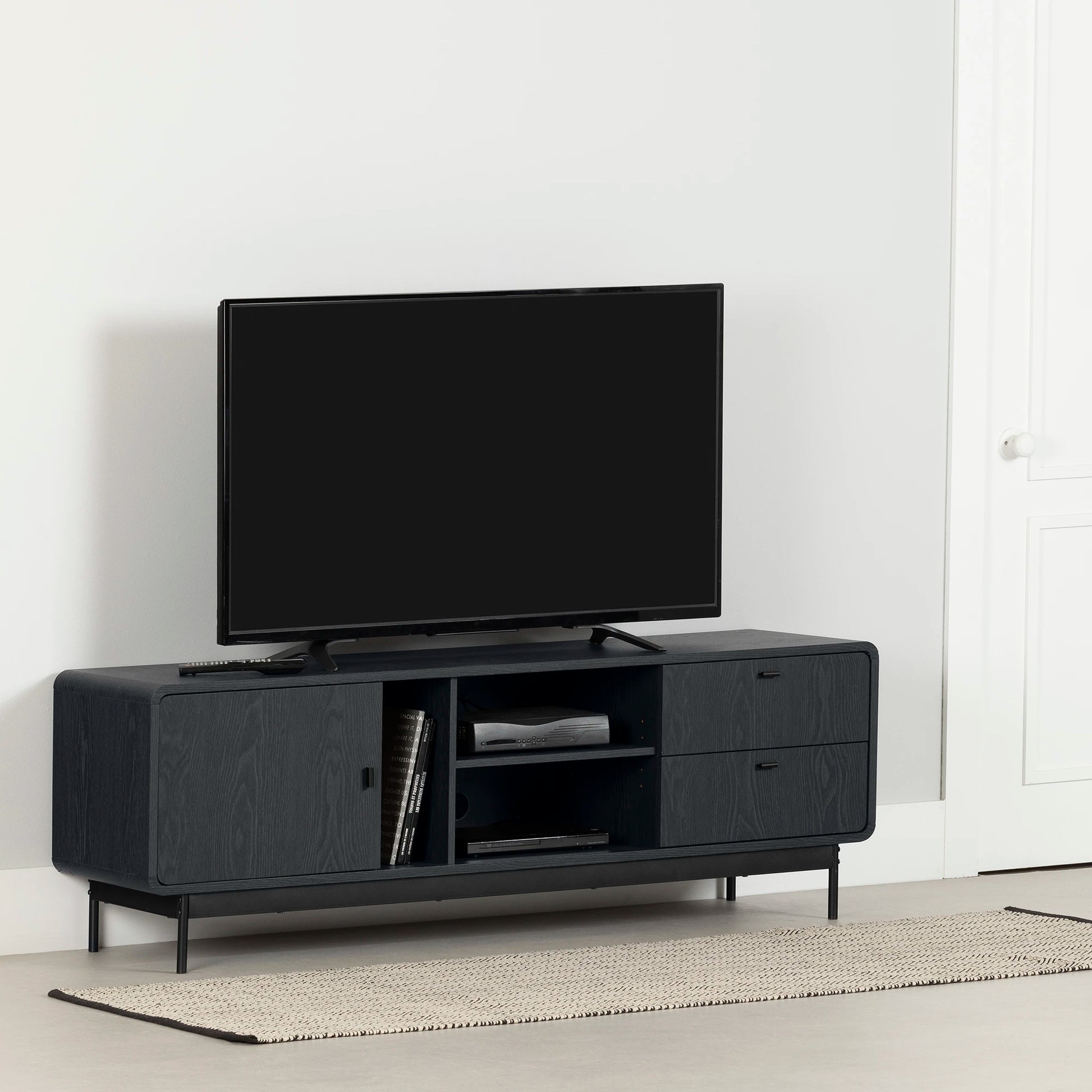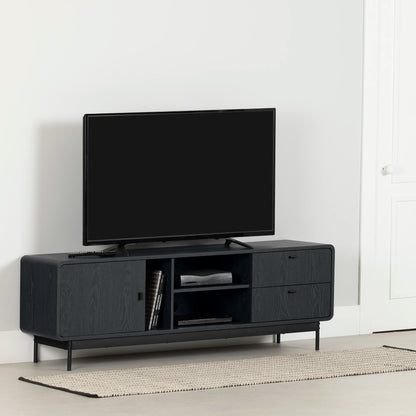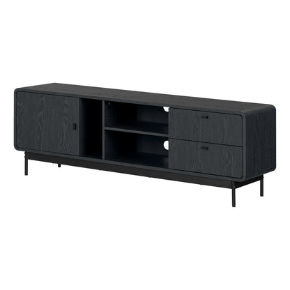 Conçu pour le divertissement, ce meuble TV offre un large éventail d’options de rangements. Outre sa capacité à accueillir un téléviseur jusqu’à 75 pouces, il dispose d’une porte avec tablette ajustable, de deux tiroirs pleine extension et d’une tablette centrale réglable à trois hauteurs. L’espace de rangement vertical peut accueillir vos livres ou vinyles, rendant ce meuble exceptionnellement polyvalent.