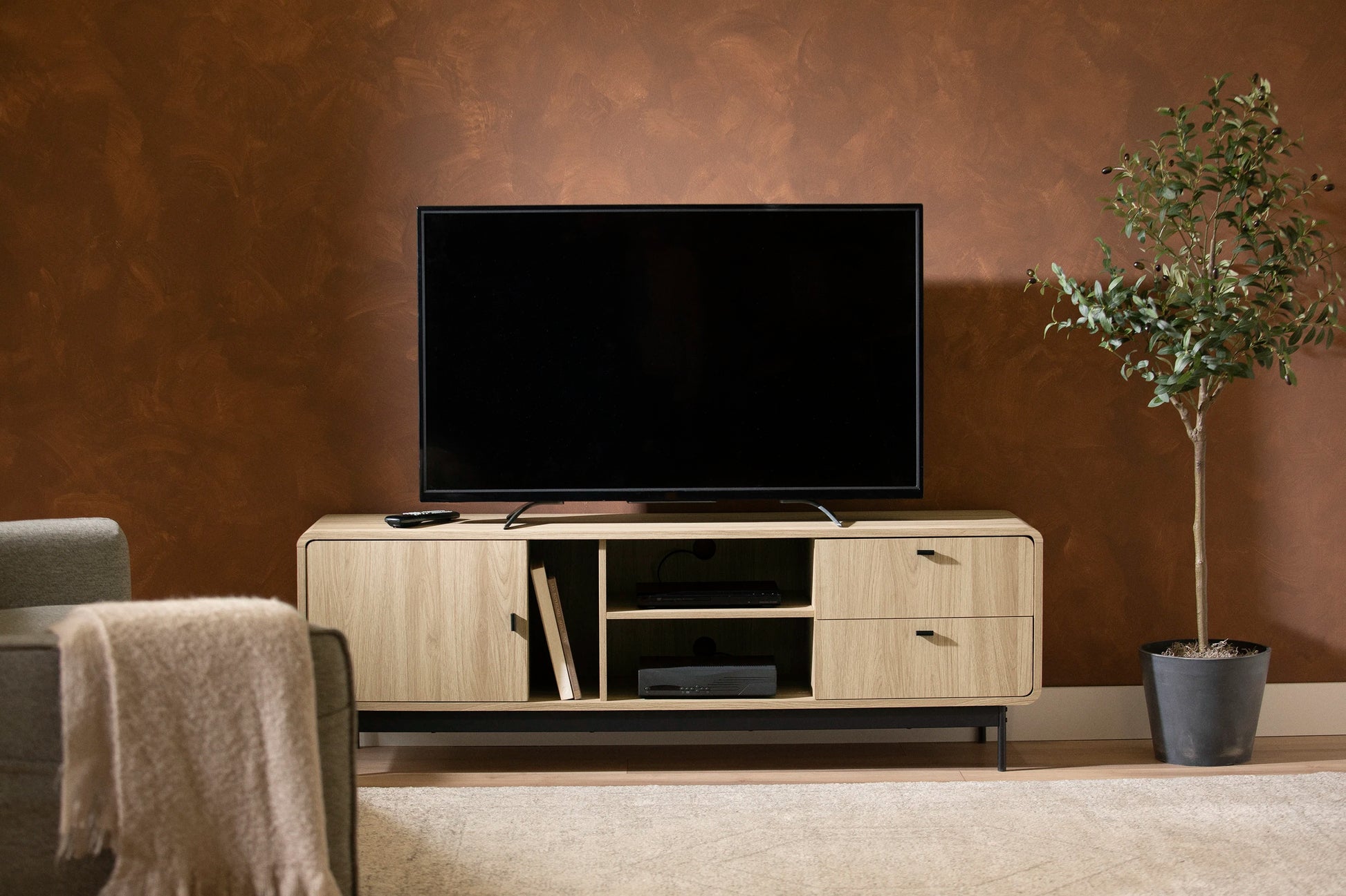 Meuble TV 2 portes avec rangement ouvert Mezzy