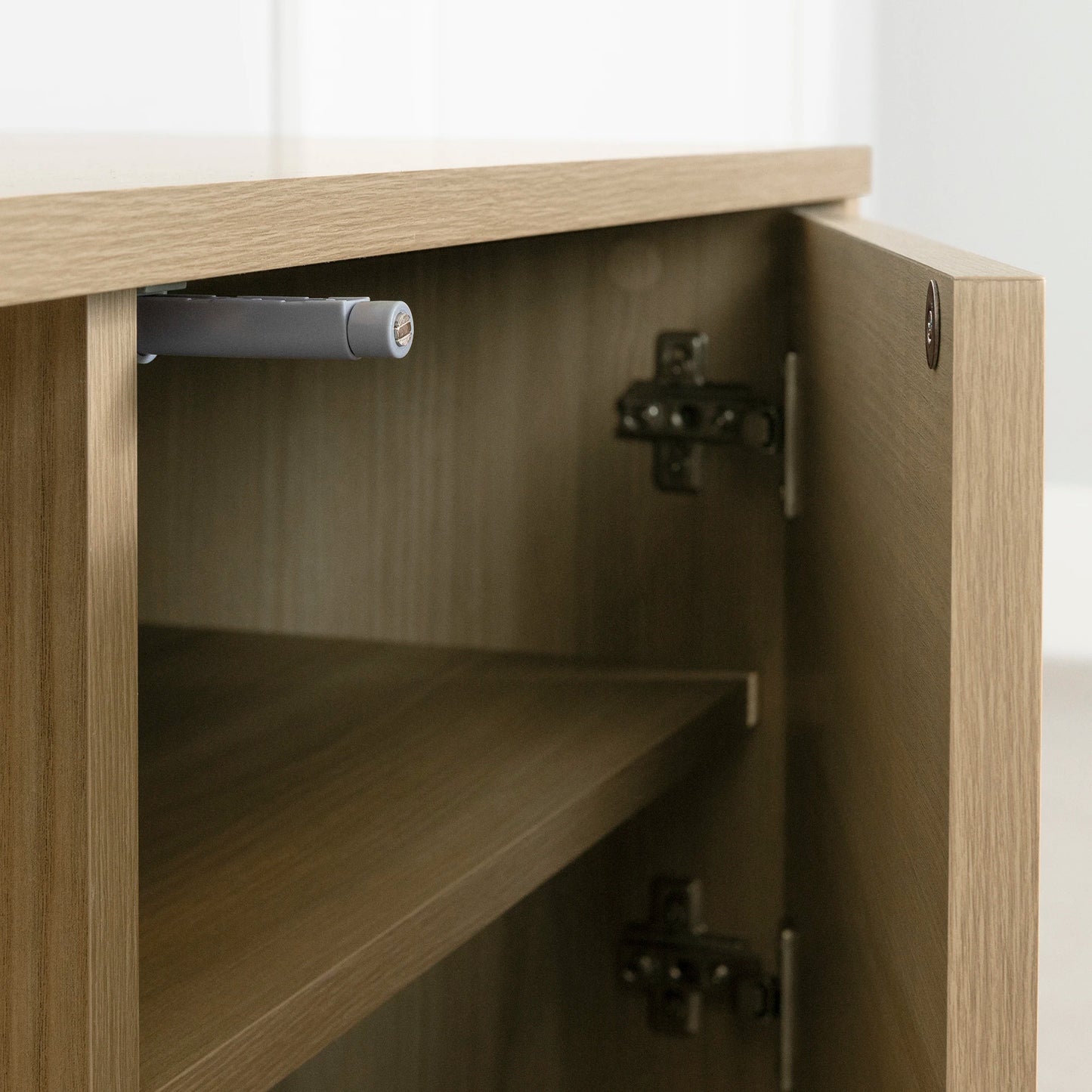 Ce meuble est une solution pensée pour rendre votre vie plus facile. Grâce à son trou passe-fil accessible de deux compartiments, fini le casse-tête des câbles! Les 2 tablettes ajustables, le généreux espace de rangement fermé et l’espace de rangement ouvert vertical vous permettent d’avoir tout à portée de main, que ce soient vos appareils, vos livres ou votre collection de vinyles. En plus, il est assez solide pour accueillir un téléviseur allant jusqu’à 75 pouces!