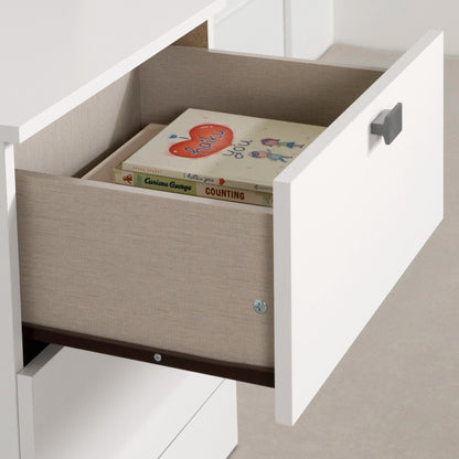 Déposez une jolie veilleuse sur cette table de chevet afin d’assurer des nuits reposantes à votre petit trésor. Sa chambre s’en verra encore mieux organisée grâce à ses 2 tiroirs spacieux montés sur de solides coulisses en métal. Votre enfant pourra y conserver ses livres, son cadran, ses carnets et ses jouets.