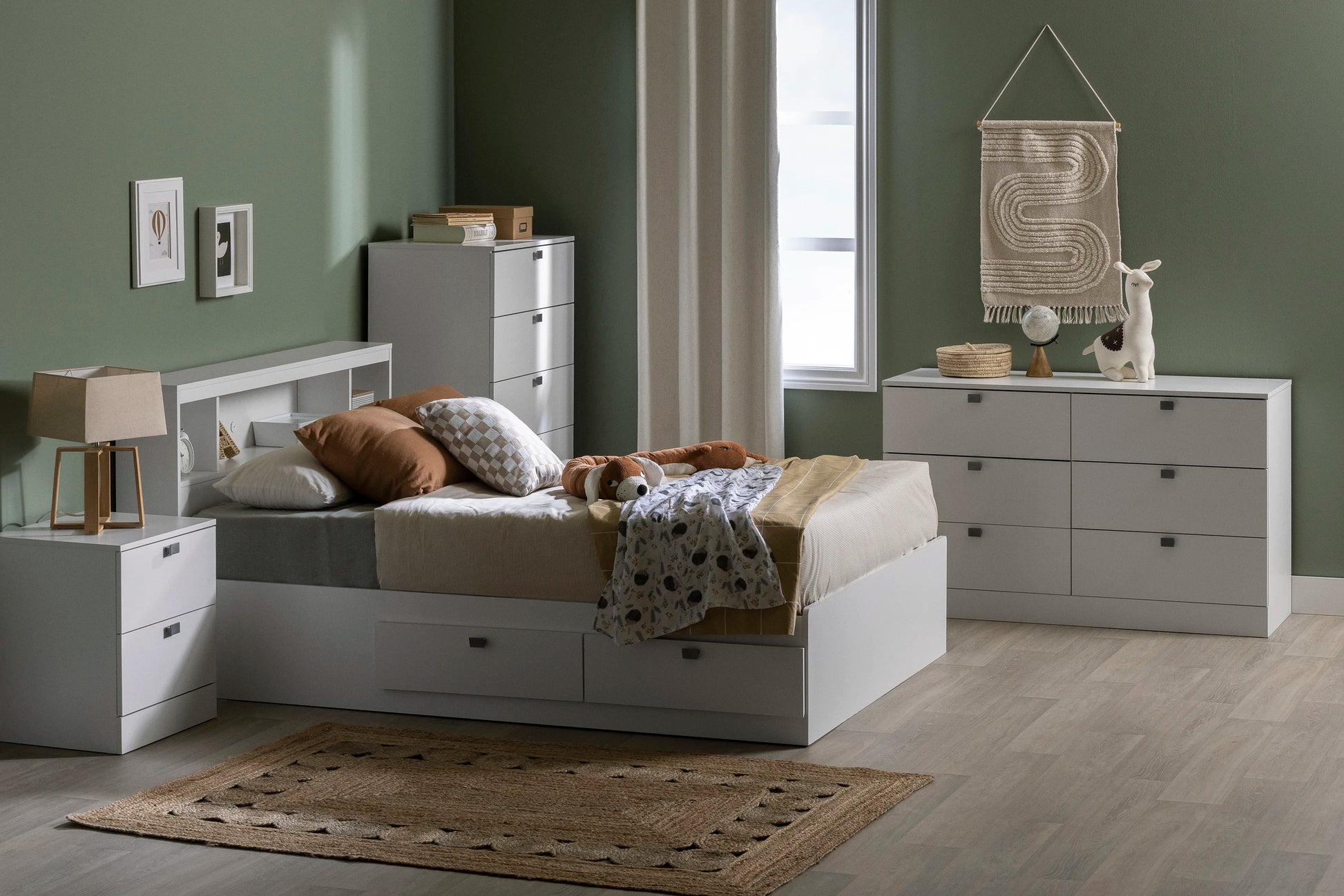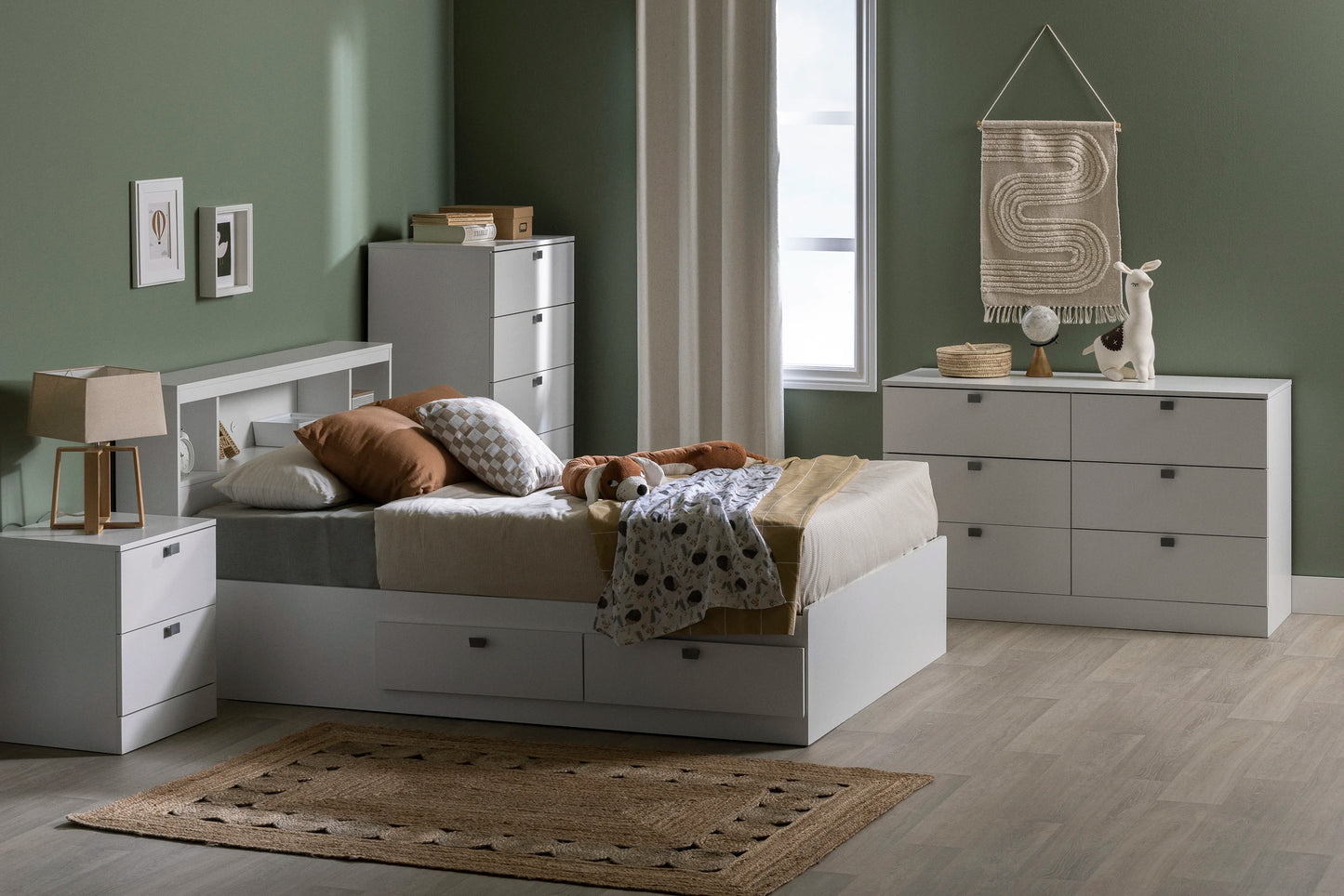 • DÉTAILS ÉLÉGANTS : optez pour une table de chevet moderne dotée de poignées carrées en métal. Elle rehaussera le décor de la chambre de votre chéri sans effort. Pour encore plus d’harmonie, agencez-la avec les autres meubles de rangement Spark.