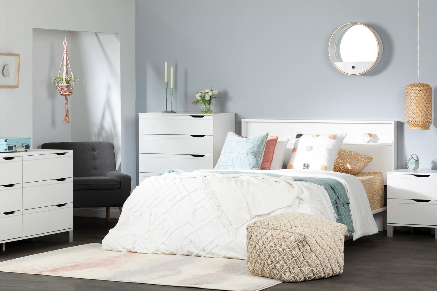 Sa longue tablette permet d’y mettre de petits items comme un cellulaire, un sent-bon, ou de petites décorations. C’est pratique d’avoir une petite tablette si près et qui ne prend pas d’espace supplémentaire dans la chambre.