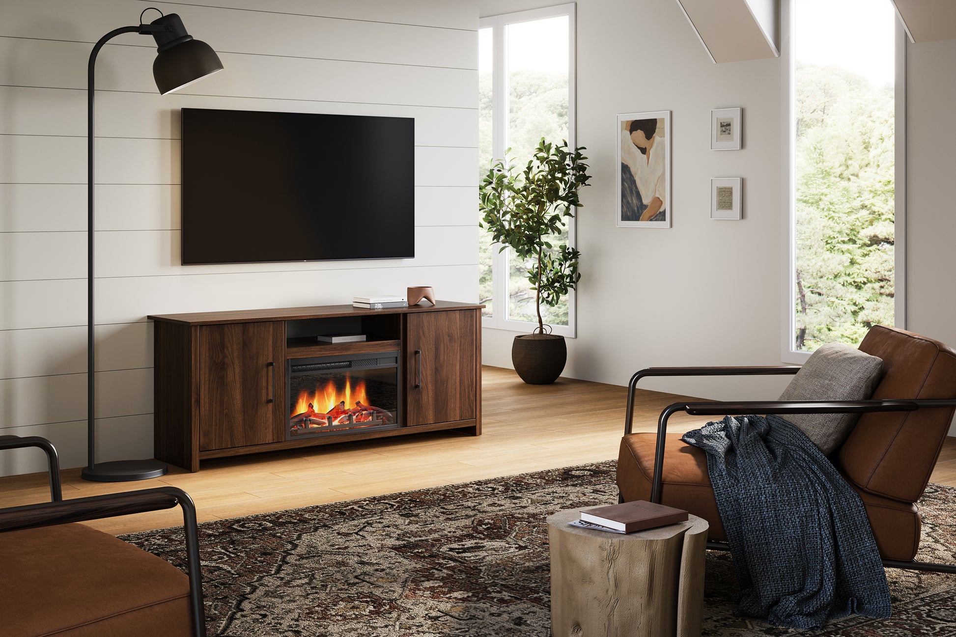 Meuble TV Fernley avec foyer intégré