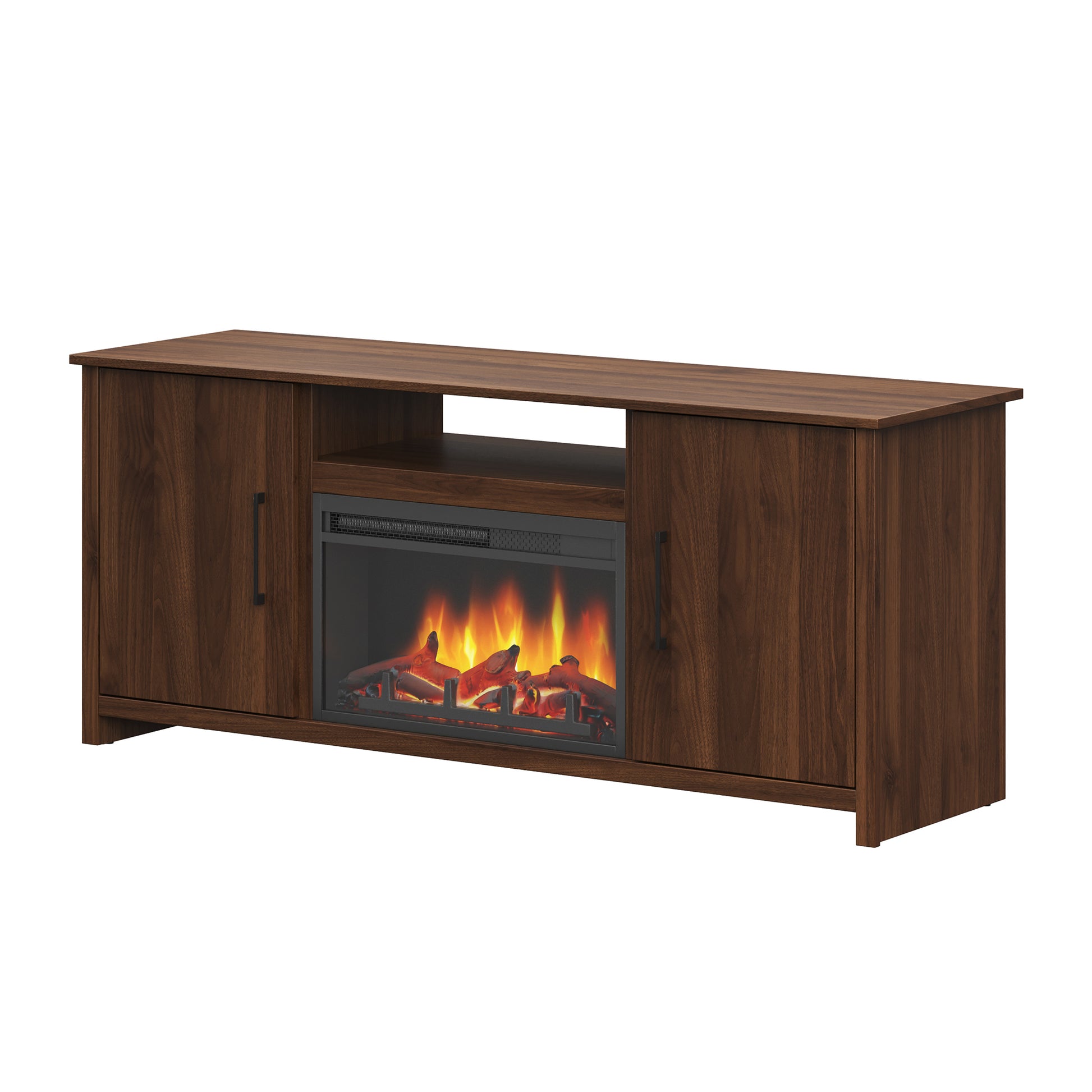 Créez une ambiance accueillante et raffinée dans votre salon grâce à ce meuble TV transitionnel avec foyer intégré. Conçu pour accueillir votre téléviseur et vos appareils de visionnement, il combine parfaitement chaleur visuelle, fonctionnalité et élégance intemporelle. Son espace de rangement ouvert est idéal pour vos équipements électroniques, tandis que les deux portes dissimulent des compartiments pratiques dotés de tablettes ajustables, vous permettant d’organiser facilement vos accessoires selon vos besoins. Les poignées noires épurées ajoutent un contraste subtil et moderne au fini bois.