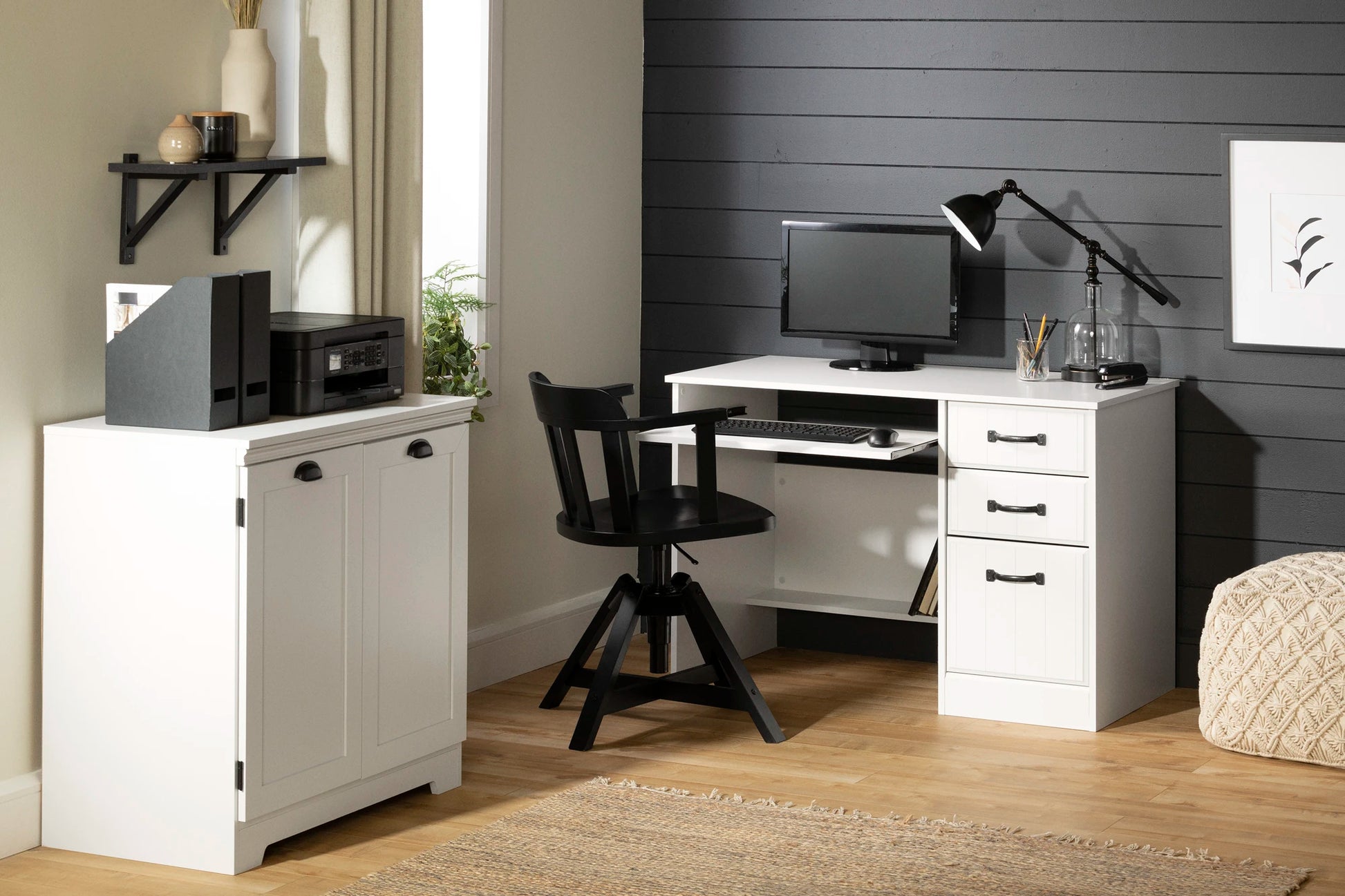 Add a soft country touch to your home with this small Farmhouse storage unit. Decorative details like framed doors and massive metal handles will give your interior a comforting touch. The space near the entrance and exit of your home will suddenly become more fun!