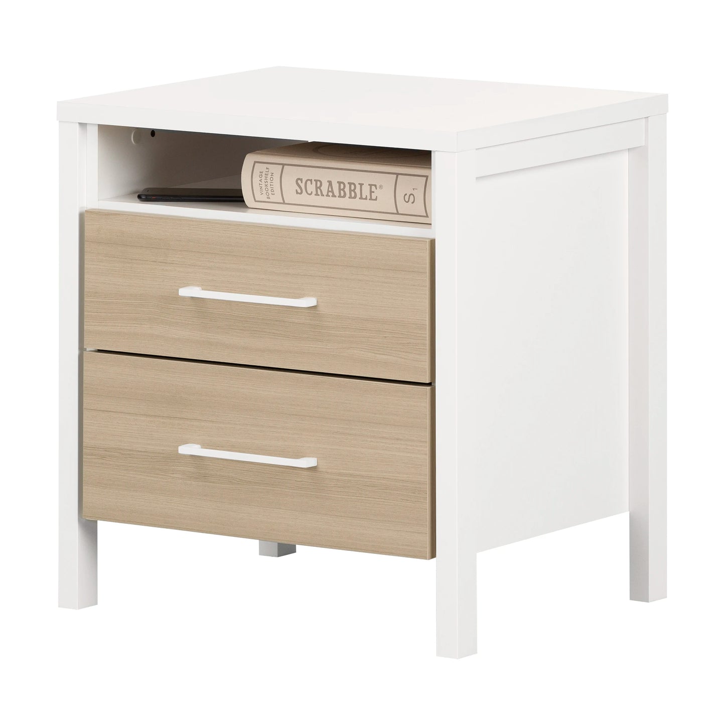This nightstand, from the Munich collection, will give your child’s bedroom a clean, charming look. To maximize storage, it features 2 drawers with metal handles and an open space. The small space in back lets you keep things tidy as you charge your phone without a bulky mess of cords.