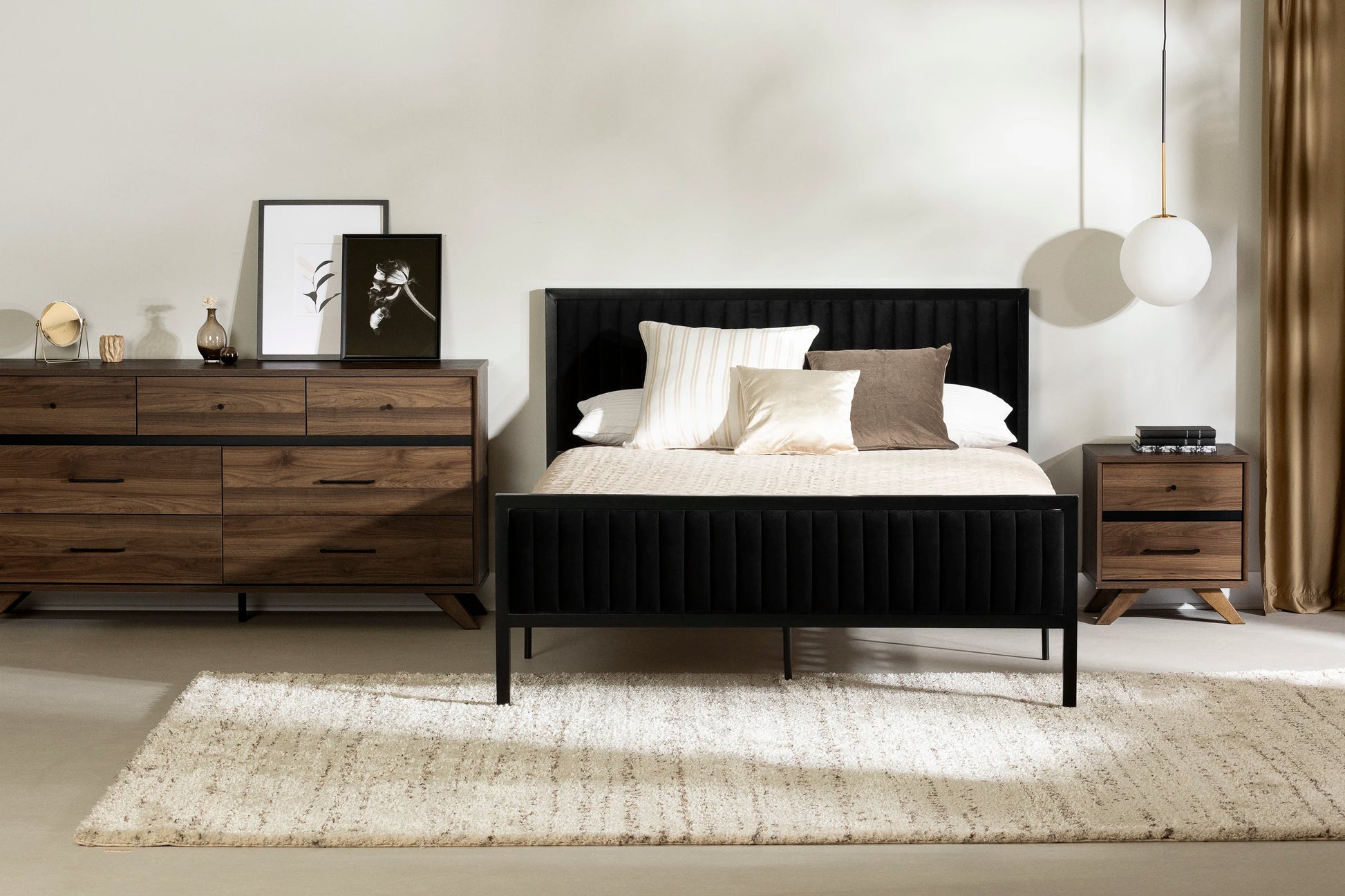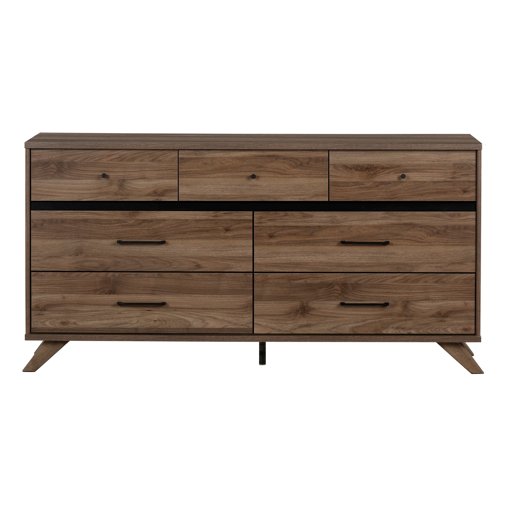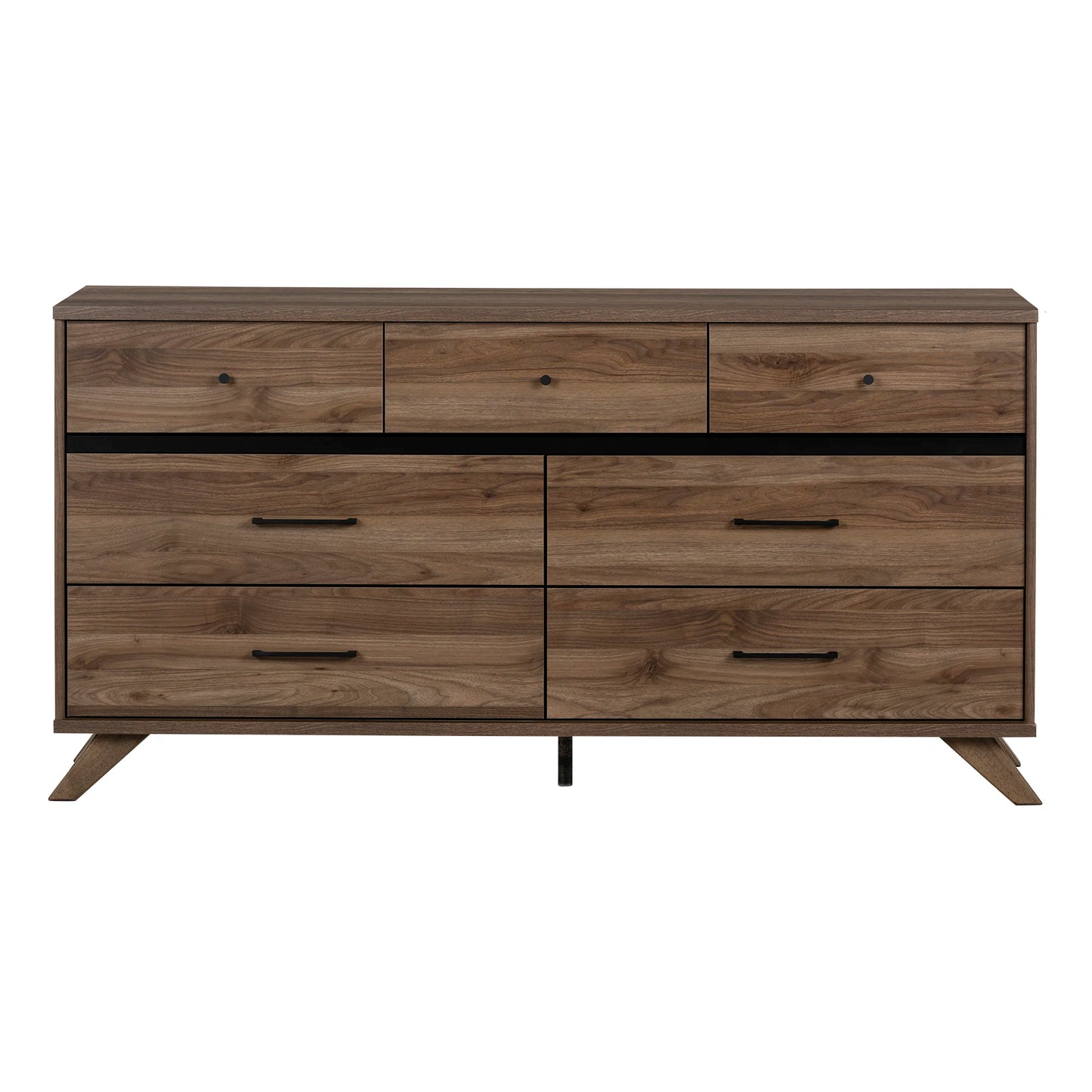 The Scandinavian style – a minimalist look that works well anywhere! This seven drawer dresser will blend in nicely, whatever your bedroom decor. Its clean lines, angled legs, and contrast molding create a warm, relaxing ambiance. Combine style and functionality in your master bedroom with this trendy looking piece that gives you a ton of storage.