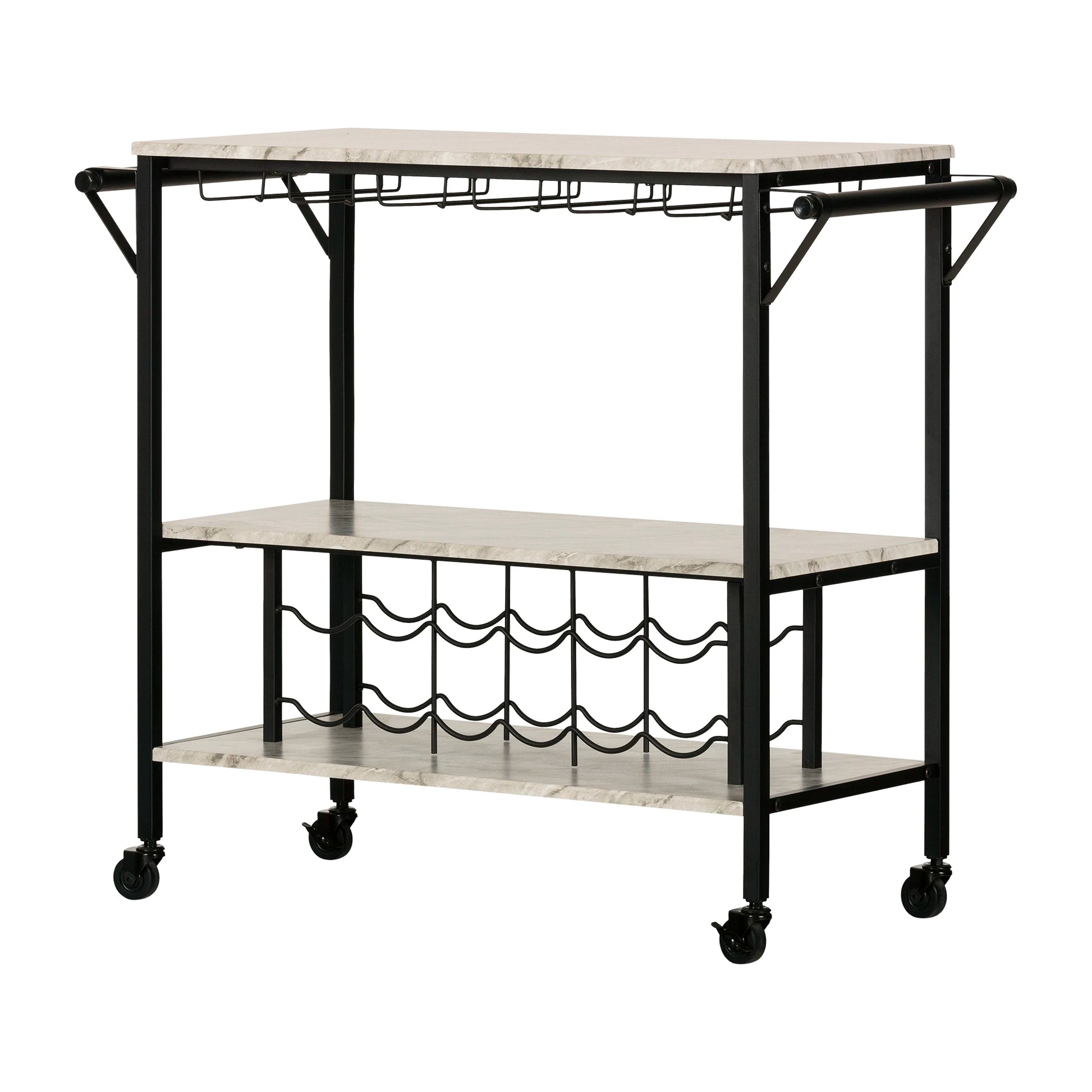 • STURDY: The two stoppers on the wheels keep the cart from moving once it’s in place, and the metal rim prevents bottles from falling to the floor.