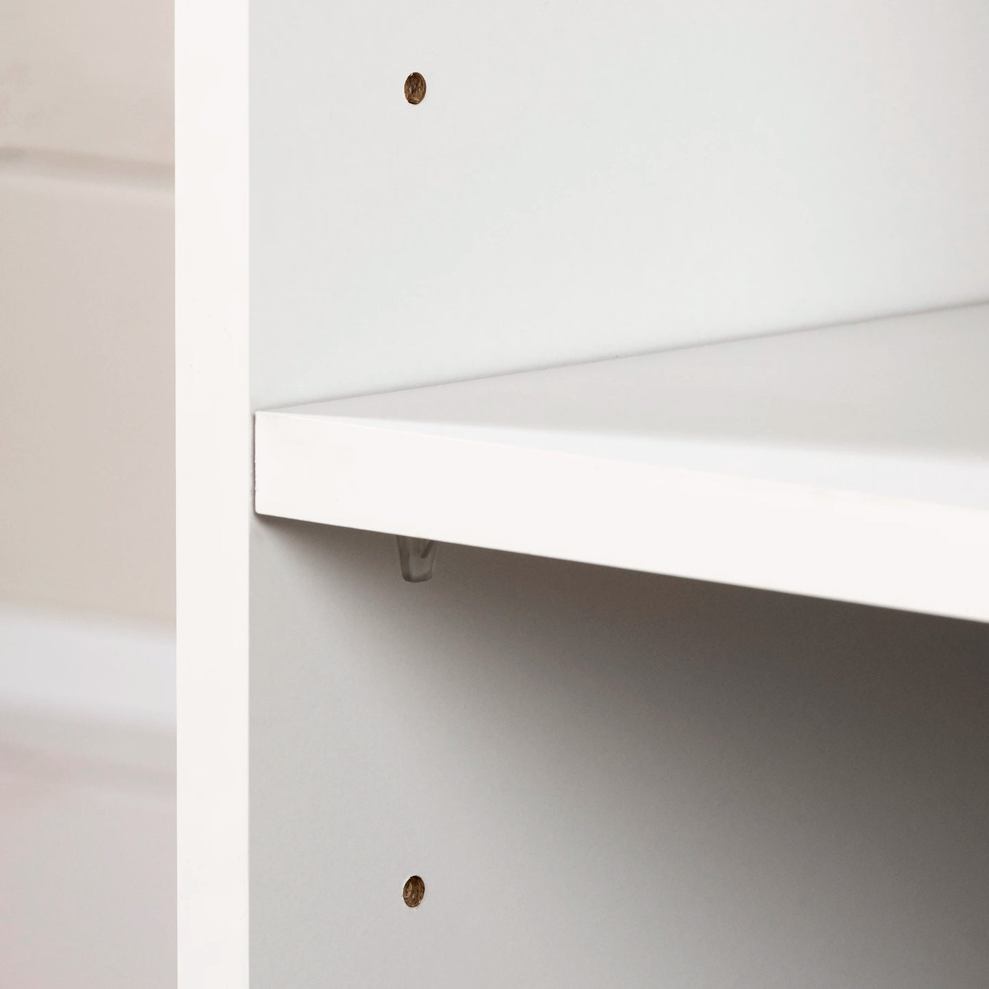 No more working on your creations in the kitchen! This craft table gives you a dedicated space for your favorite hobby… and it’s certainly not lacking for storage! You get 6 open spaces to keep things like books, notebooks, the magazines you use for inspiration, etc. within easy reach. We even added 5 adjustable shelves on one side, made especially for organizing 12” X 12” paper. Finally, you can keep materials like hot glue, scissors, or fabric out of sight in either of the 2 drawers: the small one in the middle or the deep large one facing front, which has a sliding shelf for easy access.