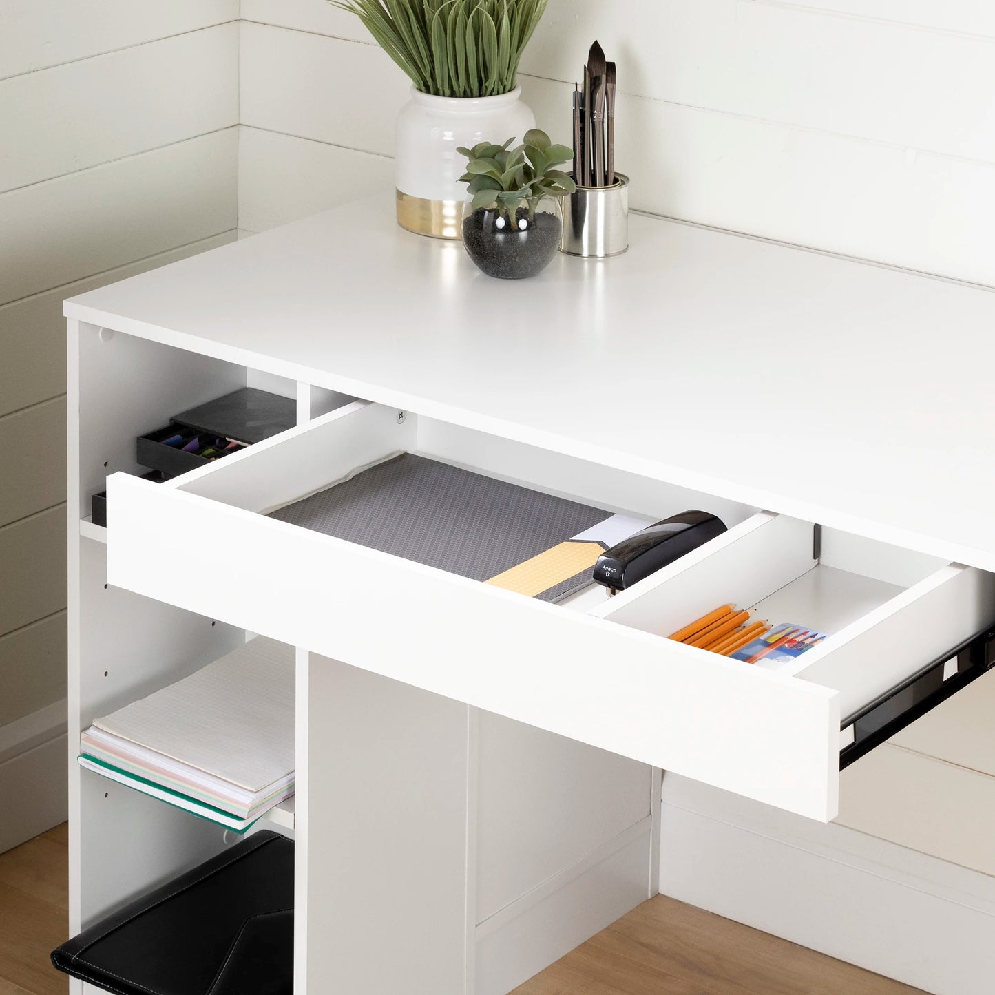 • CLOSED STORAGE: Keep certain work tools out of sight in either one of the large drawers: the one in the middle or the deep one on the side, which has a sliding shelf for easy access.