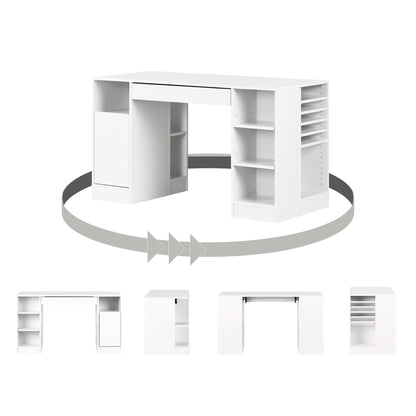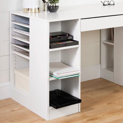 • INTERCHANGEABLE MODULES: The two storage modules on either side of the desk are interchangeable. You can choose which one you want on each side when assembling the piece.