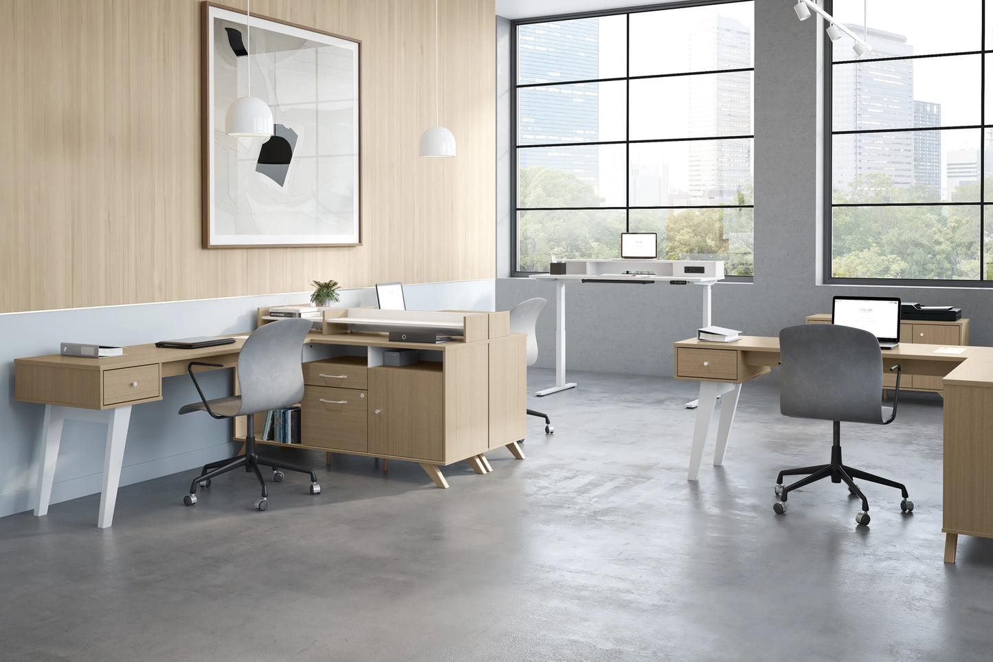 Scandinavian style means furniture that’s minimalist, simple, and – above all – functional. And that works out great, since it’s exactly what you need in a work space. The great looking metal handles and angled wooden legs give this desk a distinguished, clean look we love. The surface is made of melamine, for a superior look and high grade quality. It’s even scratch and water resistant!