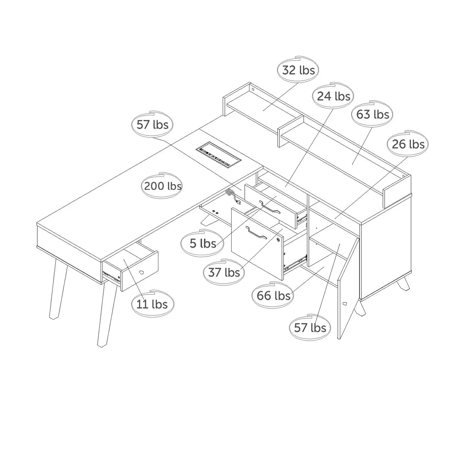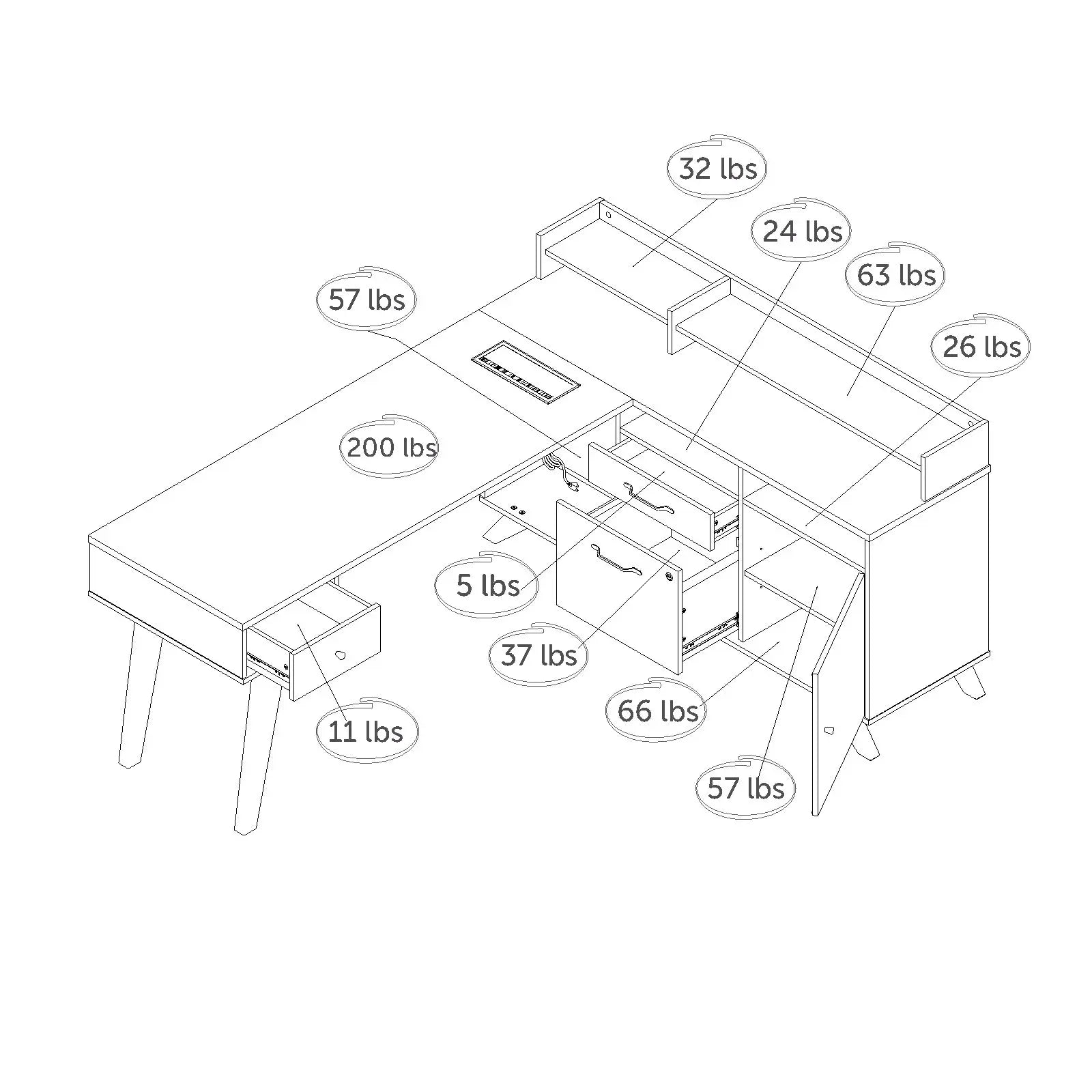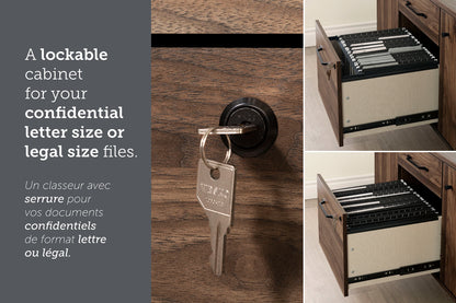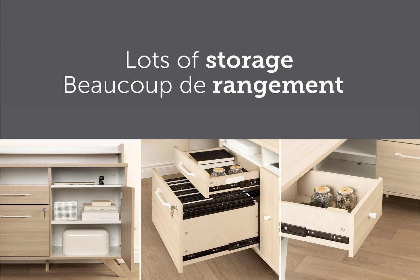 We all know that even at home, entrepreneurs and professionals need a work space that’s adapted to their needs. This corner desk will meet your every expectation – take our word for it! You get just the right combination of open and closed storage spaces, to organize all your materials nicely. The four open spaces under the surface will allow you quick access to certain items, like printer paper, pens, pencils, etc. This computer desk also features two small drawers and a door that conceals two fixed shelves and an adjustable one. The fixed shelves can support a maximum weight of 63 lb, and the adjustable one can support a maximum of 56 lb. Another feature you’ll like: a very large file drawer for 8½”x11” or 8½”x14” files that locks with a key, for more safety and better confidentiality. It’s perfect for storing your invoices, files, and important contracts!