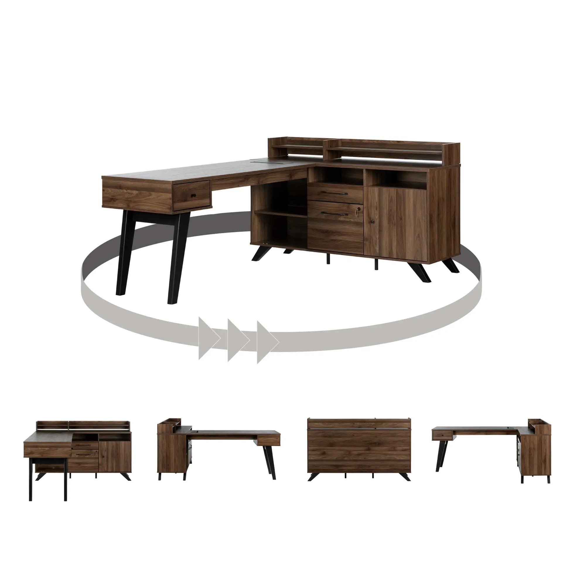 L-Shaped Desk with Power Bar and Removable Hutch - Helsy