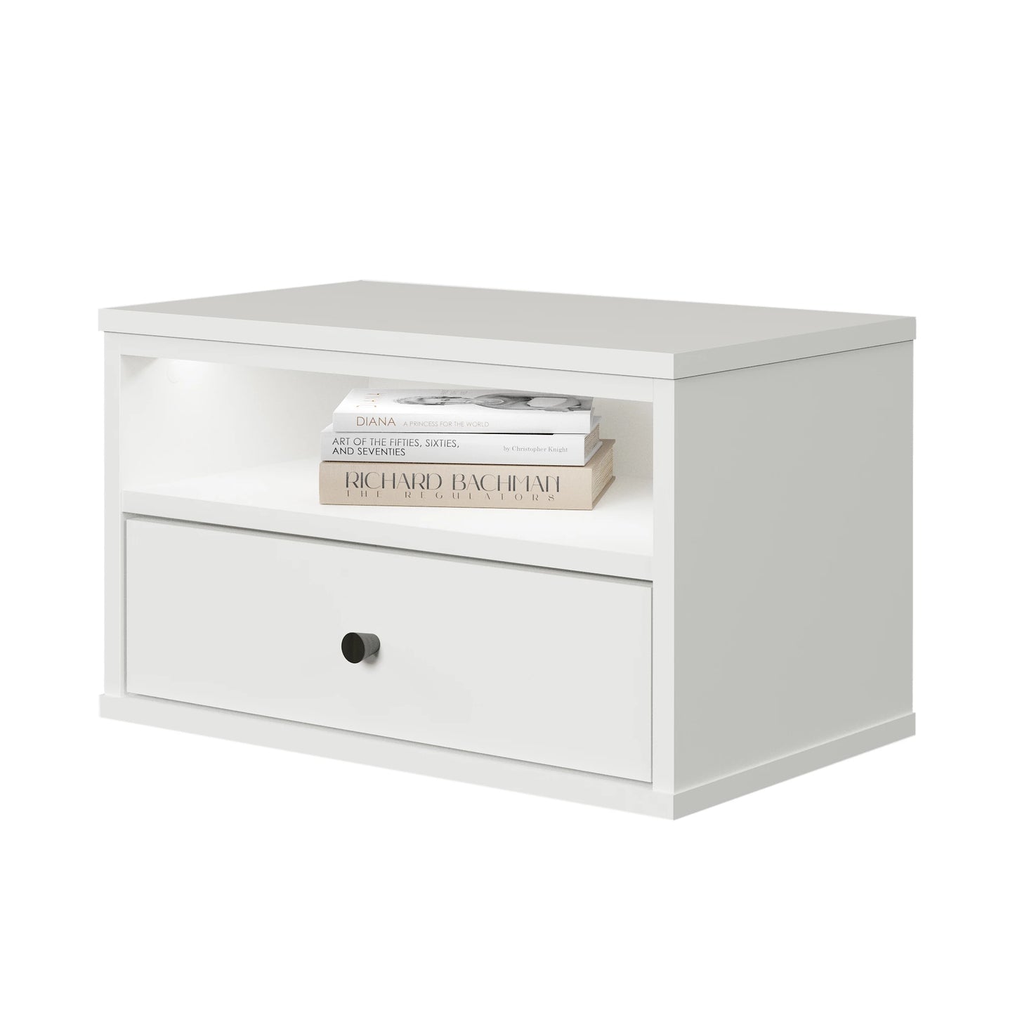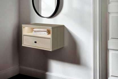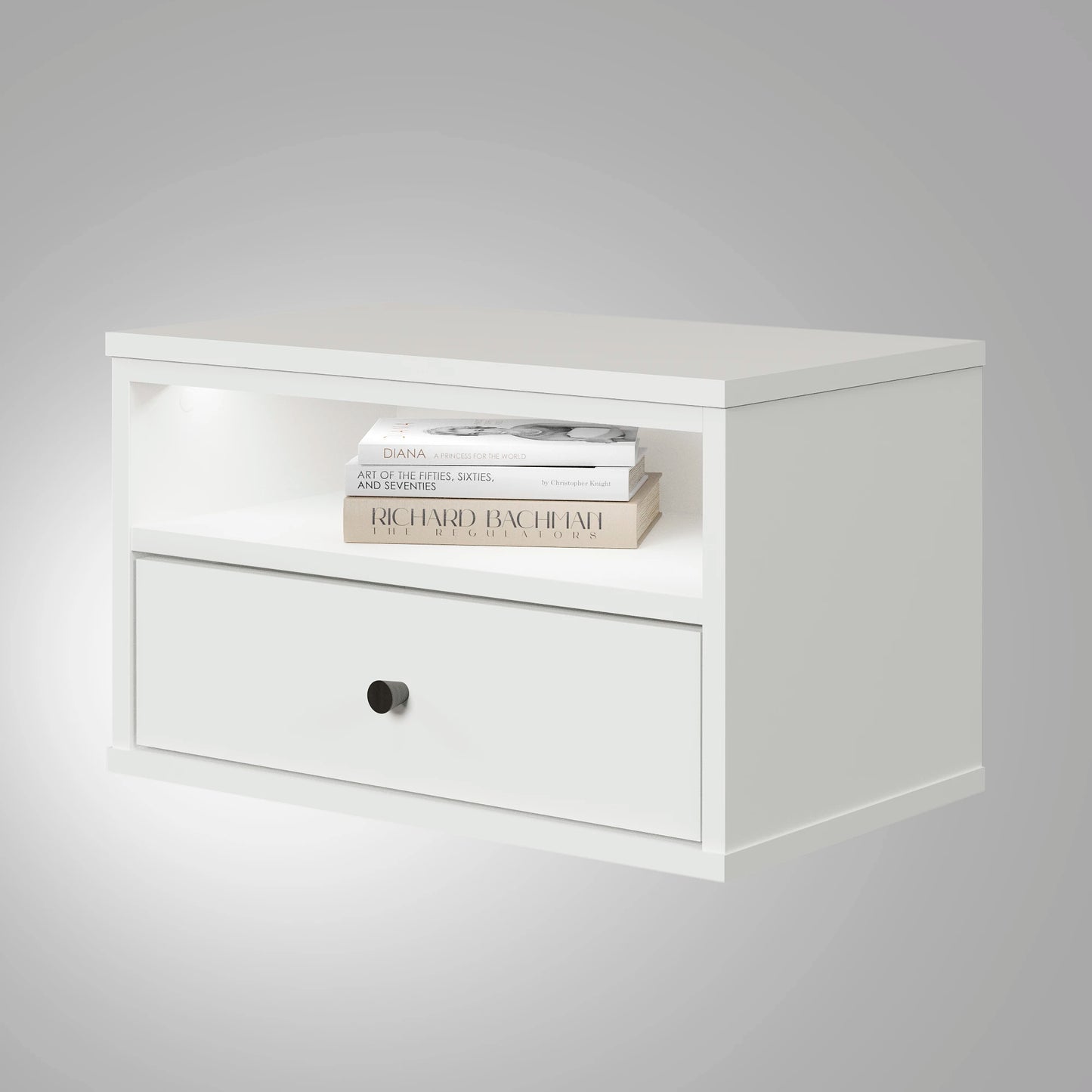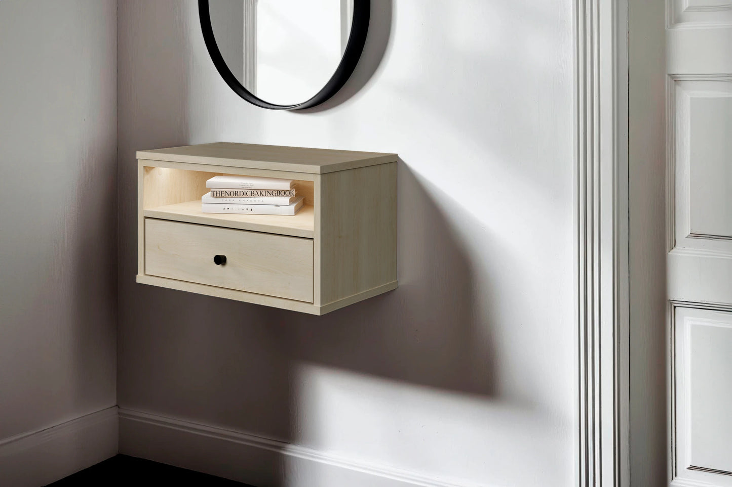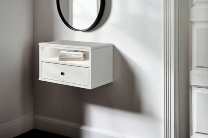 Whether you install it in your entrance or in the hall, this floating side table will adapt beautifully to its surroundings. Thanks to the included anchors, you can adjust its height to suit your needs. This compact table combines open and closed storage. Its drawer opens easily and is decorated with a round metal handle, for a minimalist contemporary style. You'll appreciate this well-thought-out piece of furniture for its versatility!