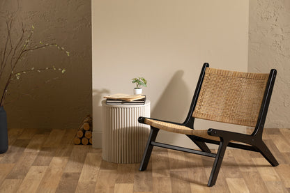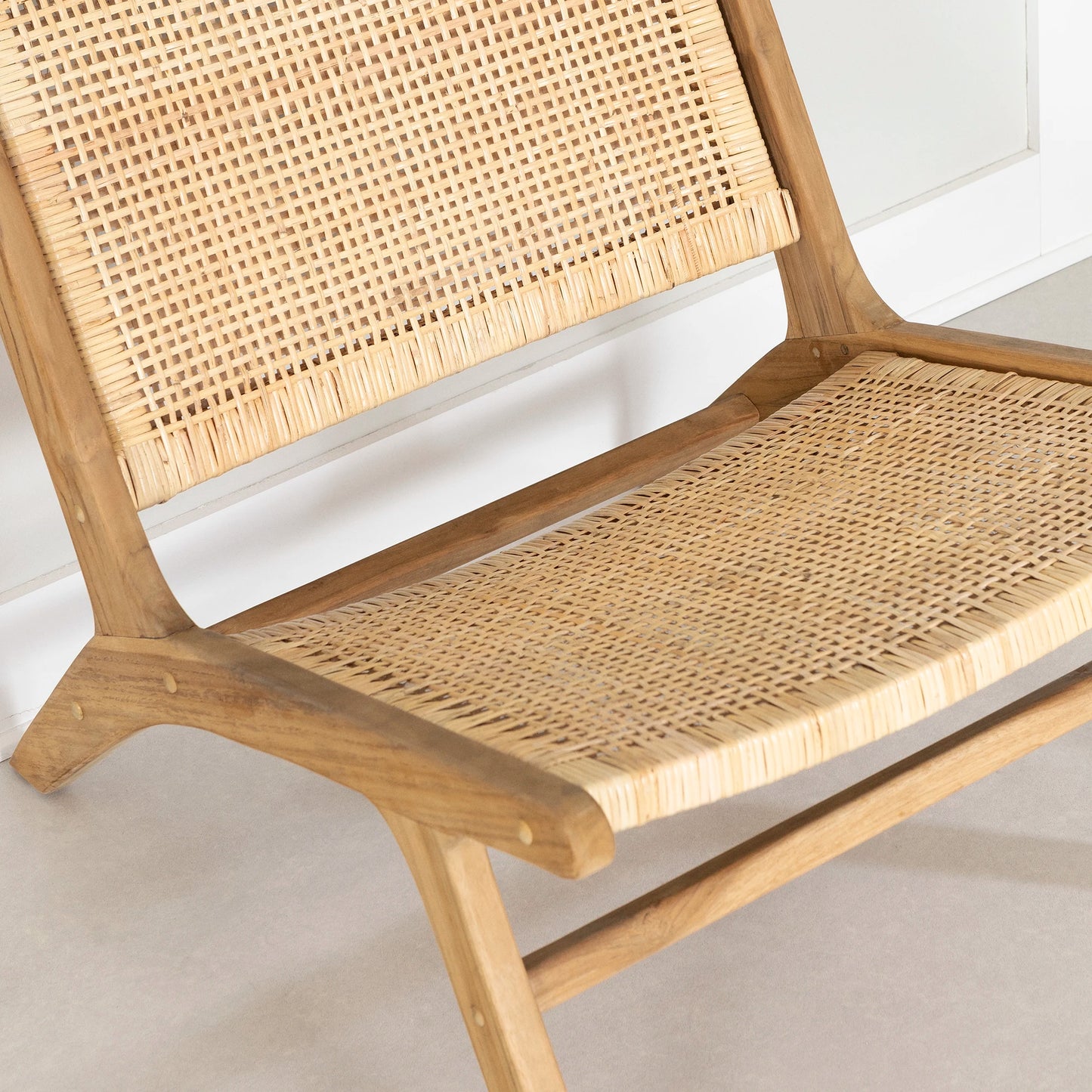 This accent chair, with its refined, exotic style, will help create a calming atmosphere in your living room, bedroom, or basement. The combination of teak wood and natural rattan, and the minimalist angular design, are totally trendy. Place it near a window, next to a lush plant, and you'll have a great space in your home for re-energizing after a long day.