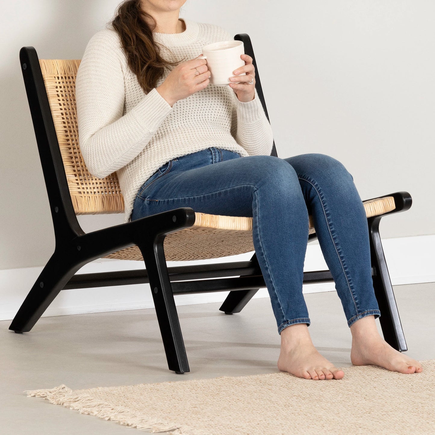 This accent chair, with its refined, exotic style, will help create a calming atmosphere in your living room, bedroom, or basement. The combination of teak wood and natural rattan, and the minimalist angular design, are totally trendy. Place it near a window, next to a lush plant, and you'll have a great space in your home for re-energizing after a long day.