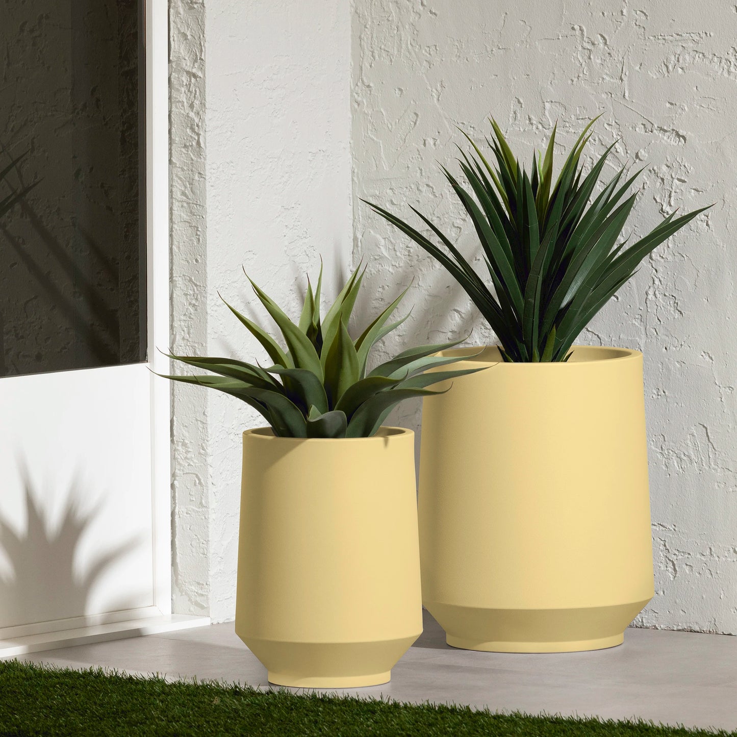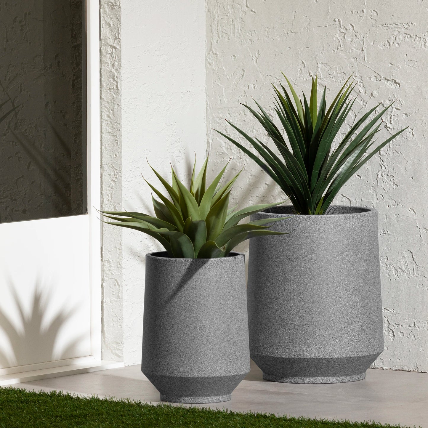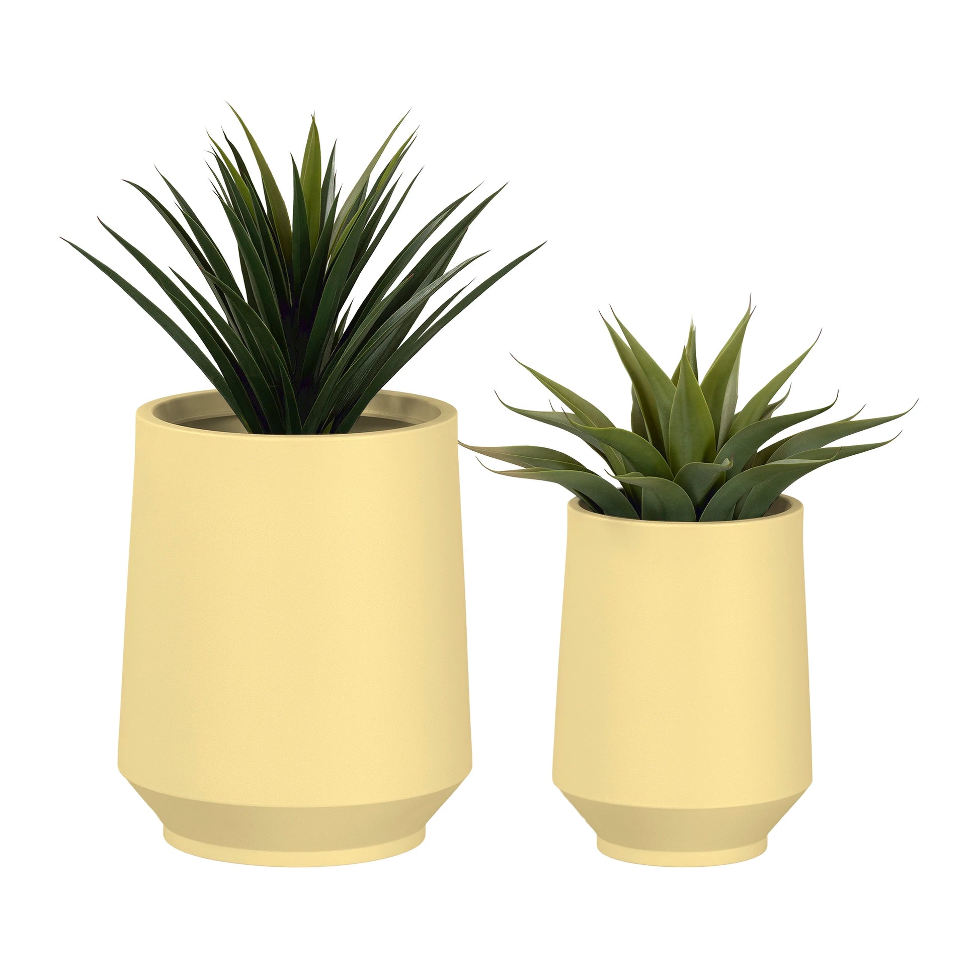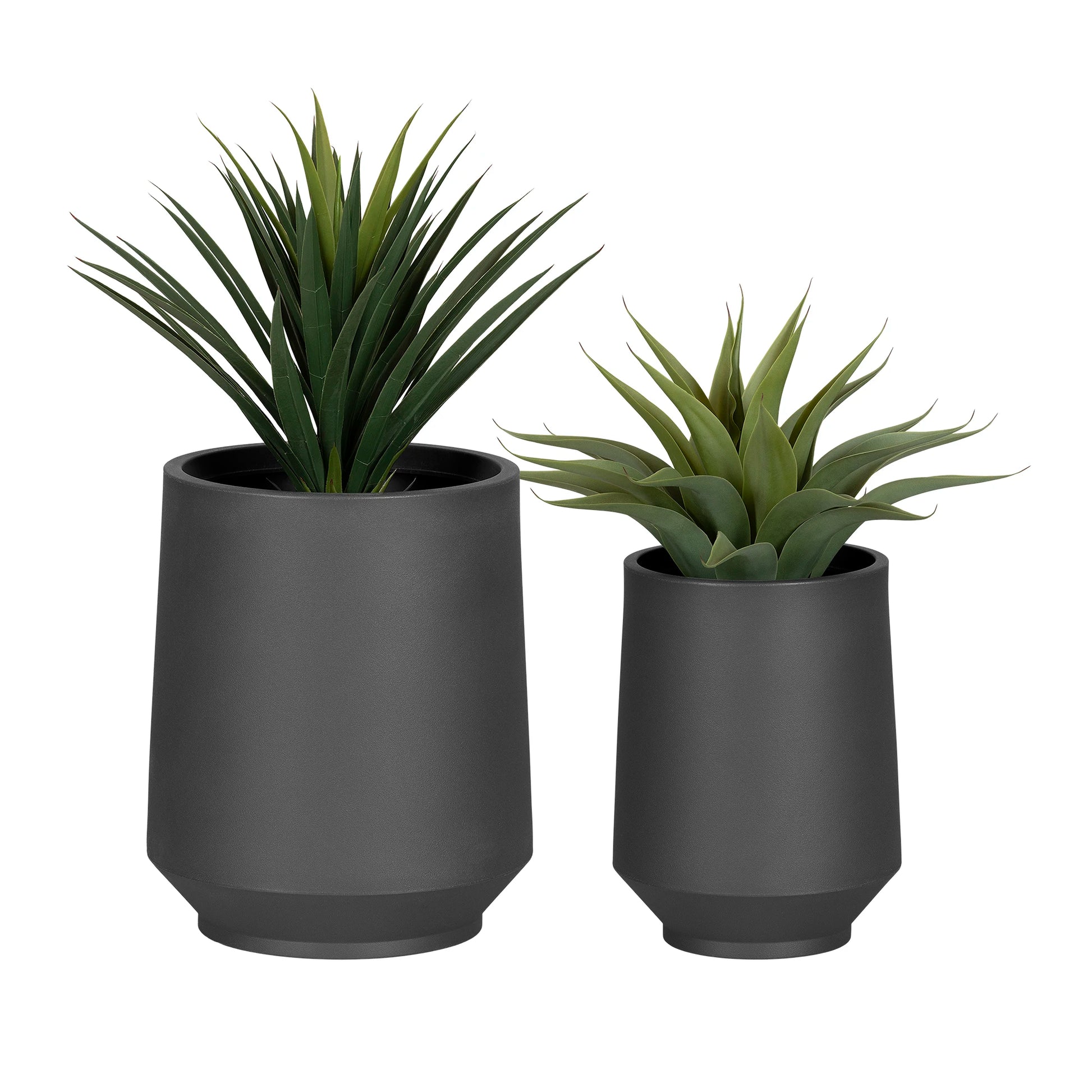 When the sun comes out, there is only one thing we want to do: enjoy the sun and spend time outside! Make your patio or deck an inviting place with this set of 2 polyethylene planters. The smallest has an inside diameter of 12 1/4 in and the largest 16 1/4 in. You can place them next to each other for a trendy asymmetrical look or integrate them into various rooms in your home. That's right! These versatile pots are suitable for both indoor and outdoor use!