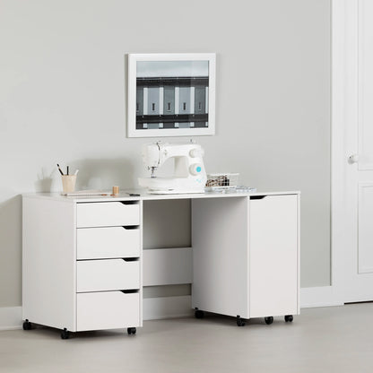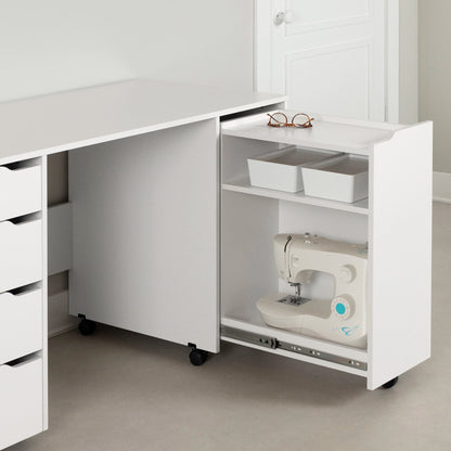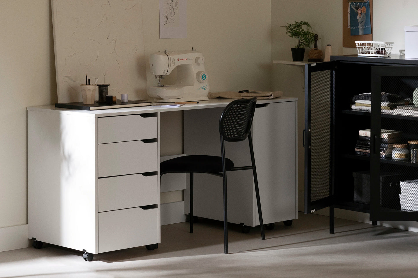 One thing you can be sure of: this versatile table will last for years! The very simple Contemporary style gives your creativity free rein. Cutout handles mean that the fabric won’t get snagged on them. The large work surface is also covered in a scratch and water resistant finish. Finally, the desk is on wheels, so you can move it wherever you like, according to your mood and what you need at the time.